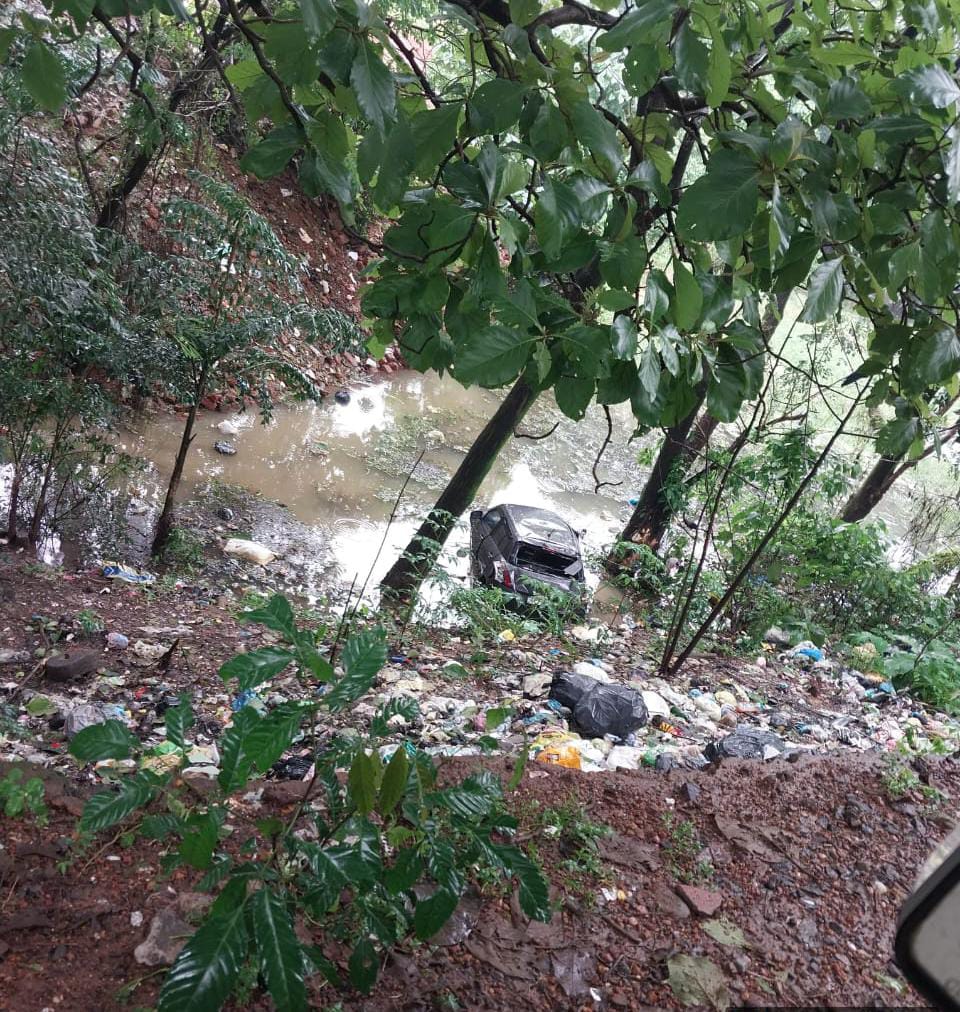ಚಾಲಕನ ನಿಯಂತ್ರಣ ತಪ್ಪಿ ಪ್ರಪಾತದಲ್ಲಿ ತುಂಬಿದ್ದ ನೀರಿಗೆ ಬಿದ್ದ ಮಾರುತಿ ಸ್ವಿಫ್ಟ್ ಕಾರು -ಕಹಳೆ ನ್ಯೂಸ್