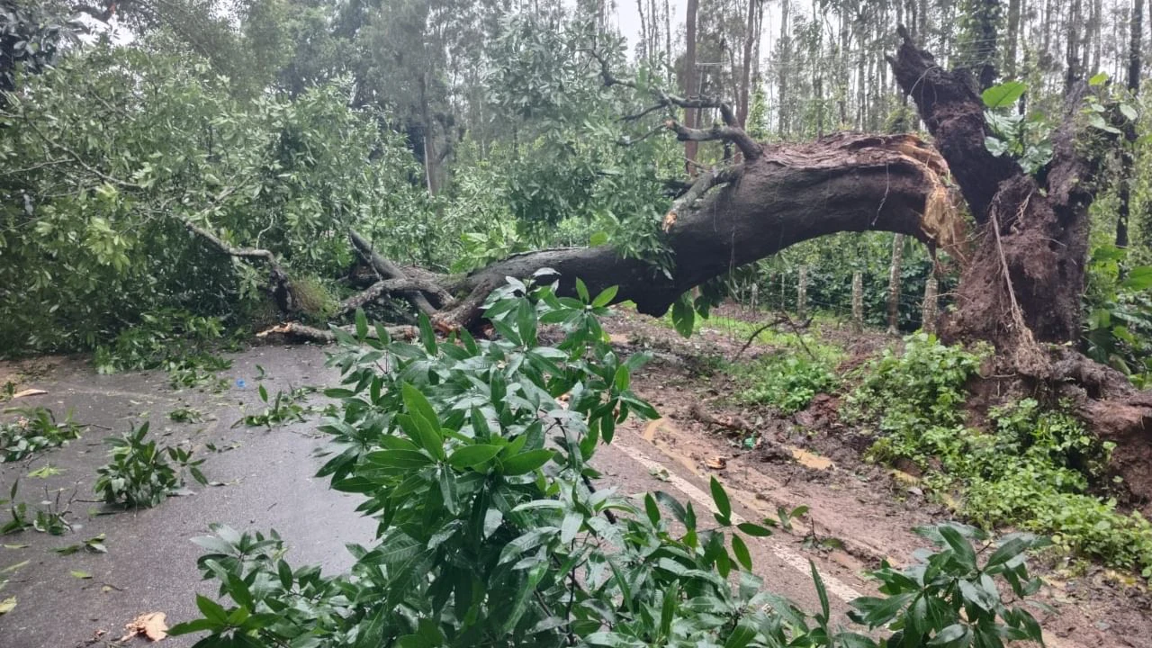 ತಲಕಾವೇರಿ ರಸ್ತೆಯ ಕೋಳಿ ಕಾಡು ಬಳಿ ಬಿರುಗಾಳಿ ಸಹಿತ ಭಾರಿ ಮಳೆಗೆ ಮರ ಉರುಳಿ ಬಿದ್ದು, ಭಾಗಮಂಡಲ-ತಲಕಾವೇರಿ ರಸ್ತೆ ಸಂಪರ್ಕ ಕಡಿತವಾಗಿದೆ. ಸದ್ಯ ಅರಣ್ಯ ಇಲಾಖೆಯಿಂದ ಮರ ತೆರವು ಕಾರ್ಯಾಚರಣೆ ನಡೆಯುತ್ತಿದೆ.