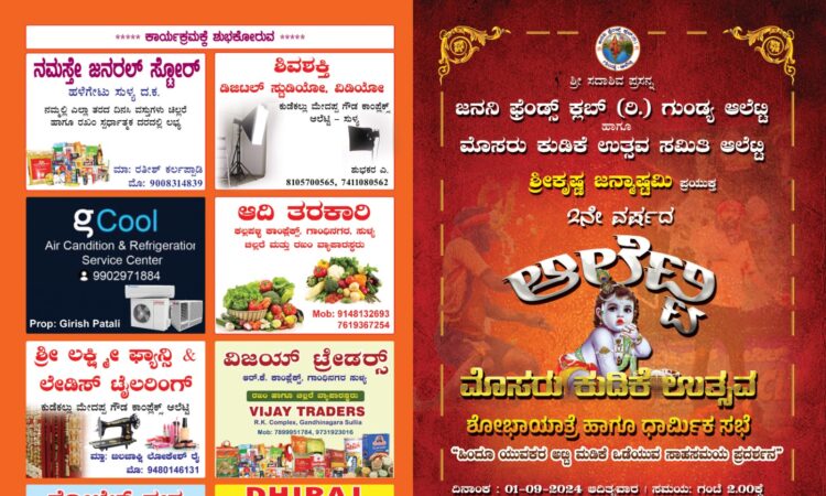 ಸೆ.1ರಂದು ಆಲೆಟ್ಟಿ ಮೊಸರು ಕುಡಿಕೆ ಸಮಿತಿ ವತಿಯಿಂದ ಎರಡನೇ ವರ್ಷದ ಮೊಸರು ಕುಡಿಕೆ ಉತ್ಸವ- ಕಹಳೆ ನ್ಯೂಸ್