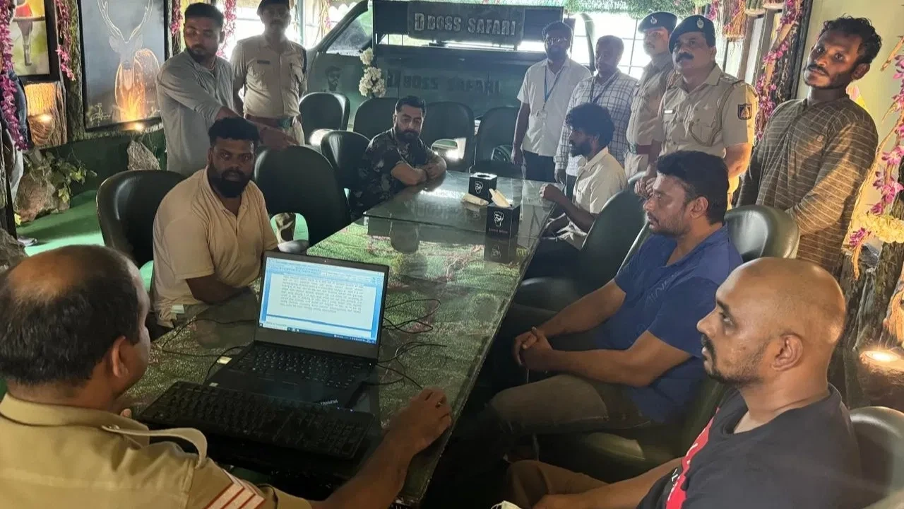 ಸ್ಟೋನಿ ಬ್ರೂಕ್ನಲ್ಲಿ ದರ್ಶನ್ ಹಾಗೂ ಗೆಳೆಯರು ಪಾರ್ಟಿ ಮಾಡಿದ್ದ ಜಾಗದಲ್ಲಿಯೇ ಅವರನ್ನೆಲ್ಲ ಕೂರಿಸಿ ಪೊಲೀಸ್ ಸಿಬ್ಬಂದಿಯೊಬ್ಬರು ಅವರ ಮುಂದೆ ಕೂತು ಲ್ಯಾಪ್ಟಾಪ್ನಲ್ಲಿ ಎಲ್ಲ ಅಂಶಗಳನ್ನು ನೋಟ್ ಮಾಡಿಕೊಳ್ಳುತ್ತಿರುವ ದೃಶ್ಯ ಚಿತ್ರದಲ್ಲಿ ಸೆರೆಯಾಗಿದೆ. ದರ್ಶನ್ ಮುಖ ಸಪ್ಪೆ ಮಾಡಿಕೊಂಡು ಕೂತಿದ್ದಾರೆ. ಫೋಟೋದಲ್ಲಿ ನಟ ಚಿಕ್ಕಣ್ಣ ಸಹ ದರ್ಶನ್ರ ಪಕ್ಕ ಕೂತಿದ್ದಾರೆ. ಚಿಕ್ಕಣ್ಣ ಸಹ ತೀವ್ರ ಆತಂಕದಲ್ಲಿರುವುದು ತಿಳಿಯುತ್ತಿದೆ. ಸ್ಟೋನಿ ಬ್ರೂಕ್ ಮಾಲೀಕ ವಿನಯ್ ಸಹ ಚಿತ್ರದಲ್ಲಿದ್ದು ಆ ವ್ಯಕ್ತಿ ಸಹ ಆತಂಕದಲ್ಲಿದ್ದಾನೆ. ಇತರೆ ಕೆಲವು ಪೊಲೀಸ್ ಸಿಬ್ಬಂದಿ ಸಹ ಚಿತ್ರದಲ್ಲಿದ್ದಾರೆ.