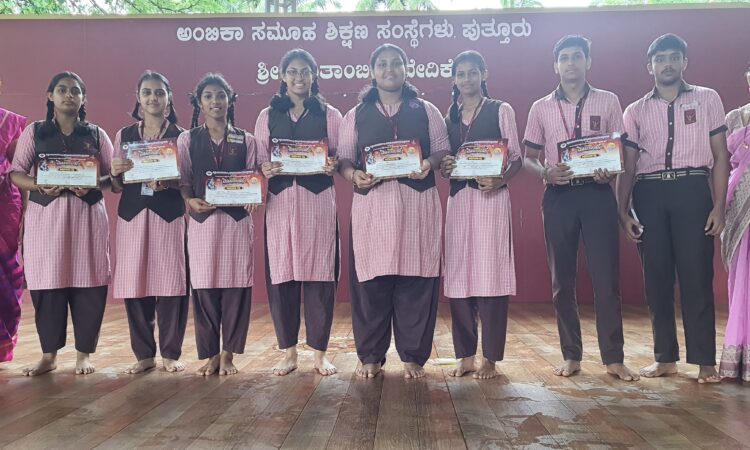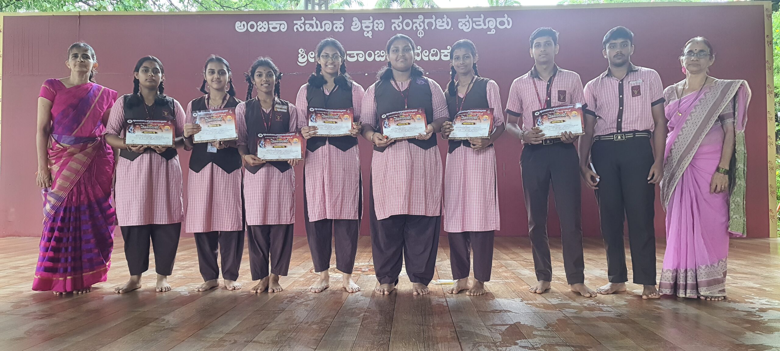 ಪುತ್ತೂರು :ವಿಶ್ವ ಹಿಂದೂ ಪರಿಷತ್ ಮತ್ತು ಪುತ್ತೂರು ಮೊಸರು ಕುಡಿಕೆ ಉತ್ಸವ ಇದರ ಪ್ರಾಯೋಜಕತ್ವದಲ್ಲಿ ಶ್ರೀ ಮಹಾಲಿಂಗೇಶ್ವರ ದೇವಸ್ಥಾನದ ವಠಾರದಲ್ಲಿ ನಡೆದ ಮೊಸರು ಕುಡಿಕೆ ಉತ್ಸವದ ಸ್ಪರ್ಧೆಯಲ್ಲಿ ಹಲವಾರು ಪ್ರಶಸ್ತಿ ಮತ್ತು ಅಭಿನಂದನಾ ಪತ್ರಗಳನ್ನು ಅಂಬಿಕಾ ಸಿಬಿಎಸ್ಇ ವಿದ್ಯಾಲಯದ ವಿದ್ಯಾರ್ಥಿಗಳು ತಮ್ಮದಾಗಿಸಿಕೊಂಡಿದ್ದಾರೆ.