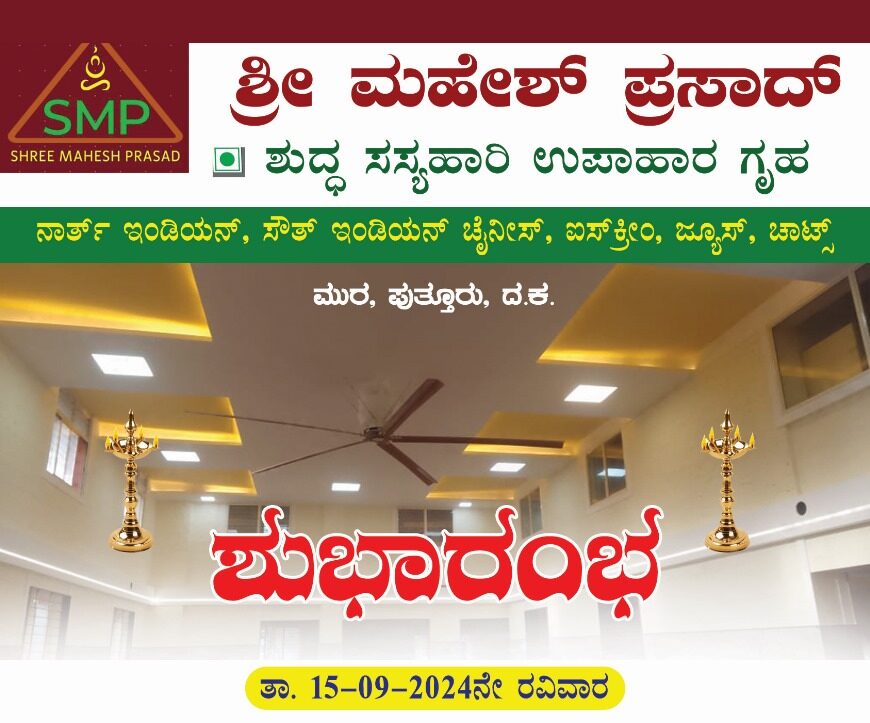 ಸೆ.15ರಂದು ಪುತ್ತೂರಿನ ಮುರದಲ್ಲಿ ಶುಭಾರಂಭಗೊಳ್ಳಲಿರುವ ಶ್ರೀ ಮಹೇಶ್ ಪ್ರಸಾದ್ ಶುದ್ಧ ಸಸ್ಯಹಾರಿ ಉಪಾಹಾರ ಗೃಹ – ಕಹಳೆ ನ್ಯೂಸ್