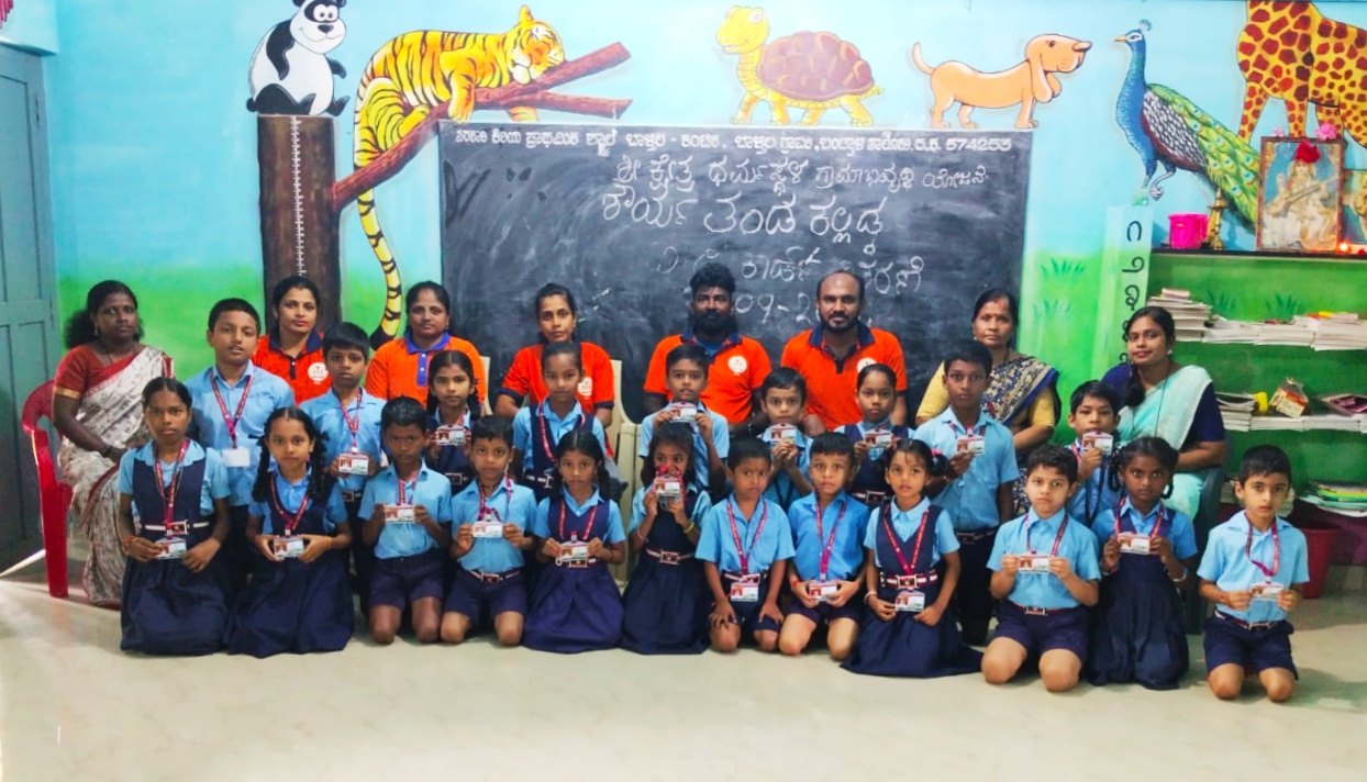 ಕಲ್ಲಡ್ಕ : ಶ್ರೀ ಕ್ಷೇತ್ರ ಧರ್ಮಸ್ಥಳ ಗ್ರಾಮಾಭಿವೃದ್ಧಿ ಯೋಜನೆಯ ಕಲ್ಲಡ್ಕ ವಲಯ ಶೌರ್ಯ ವಿಪತ್ತು ನಿರ್ವಹಣಾ ಘಟಕದ ವತಿಯಿಂದ ಬಂಟ್ವಾಳ ತಾಲೂಕಿನ ಬಾಳ್ತಿಲ ಗ್ರಾಮದ ಕಂಠಿಕ ಸರಕಾರಿ ಕಿರಿಯ ಪ್ರಾಥಮಿಕ ಶಾಲೆಯ ಮಕ್ಕಳಿಗೆ ಕೊಡುಗೆಯಾಗಿ ನೀಡಿದ ಗುರುತಿನ ಕಾರ್ಡ್ ವಿತರಣೆ ಮಾಡಲಾಯಿತು.