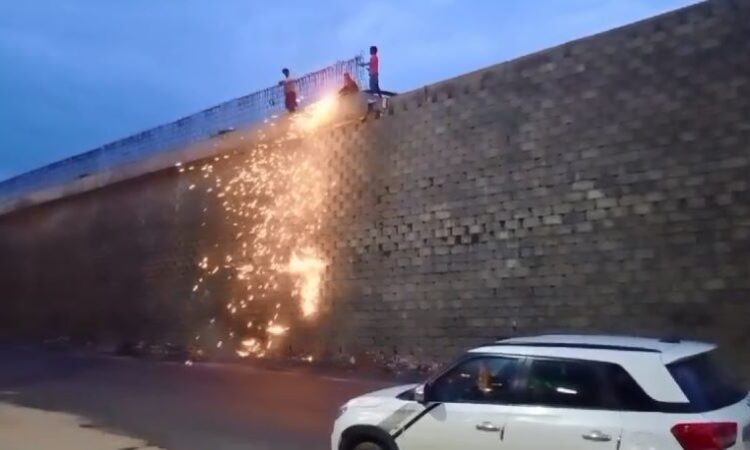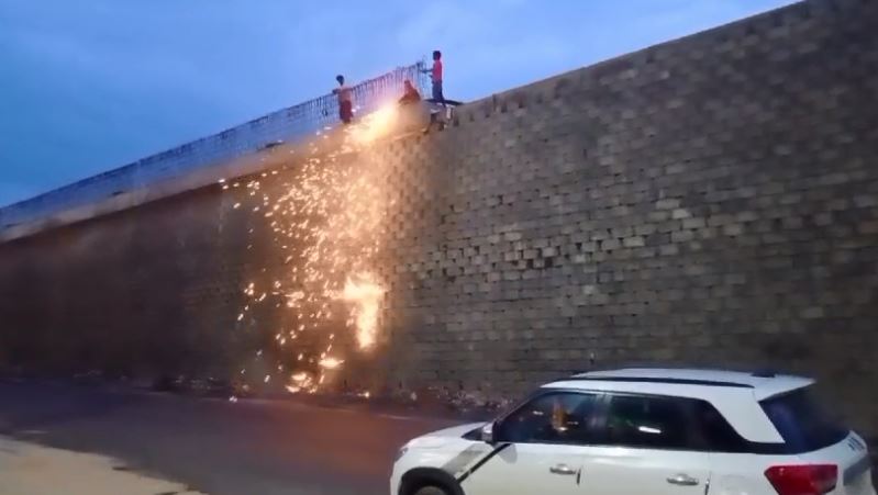 ಮೆಲ್ಕಾರ್ ನಲ್ಲಿ ಅಂಡರ್ ಪಾಸ್ ಕಾಮಗಾರಿ ಭರದಿಂದ ಸಾಗುತ್ತಿದ್ದು, ರಸ್ತೆಯ ಎರಡು ಸೈಡ್ ಗಳಿಗೆ ರಕ್ಷಣಾ ಬೇಲಿ ಅಂದರೆ ತಡೆ ಬೇಲಿಯನ್ನು ನಿರ್ಮಿಸಲು ಕಬ್ಬಿಣದ ರಾಡ್ ಗಳನ್ನು ವೆಲ್ಡಿಂಗ್ ಮಾಡಲಾಗುತ್ತಿದೆ. ಈ ವೇಳೆ ವೆಲ್ಡಿಂಗ್ ನ ಬೆಂಕಿಯುಂಡೆಗಳು ಮೇಲ್ಭಾಗದಿಂದ ಕೆಳಕ್ಕೆ ಸರ್ವೀಸ್ ರಸ್ತೆಗೆ ಬೀಳುತ್ತಿರುವ ವಿಡಿಯೋ ವೈರಲ್ ಆಗಿದೆ.