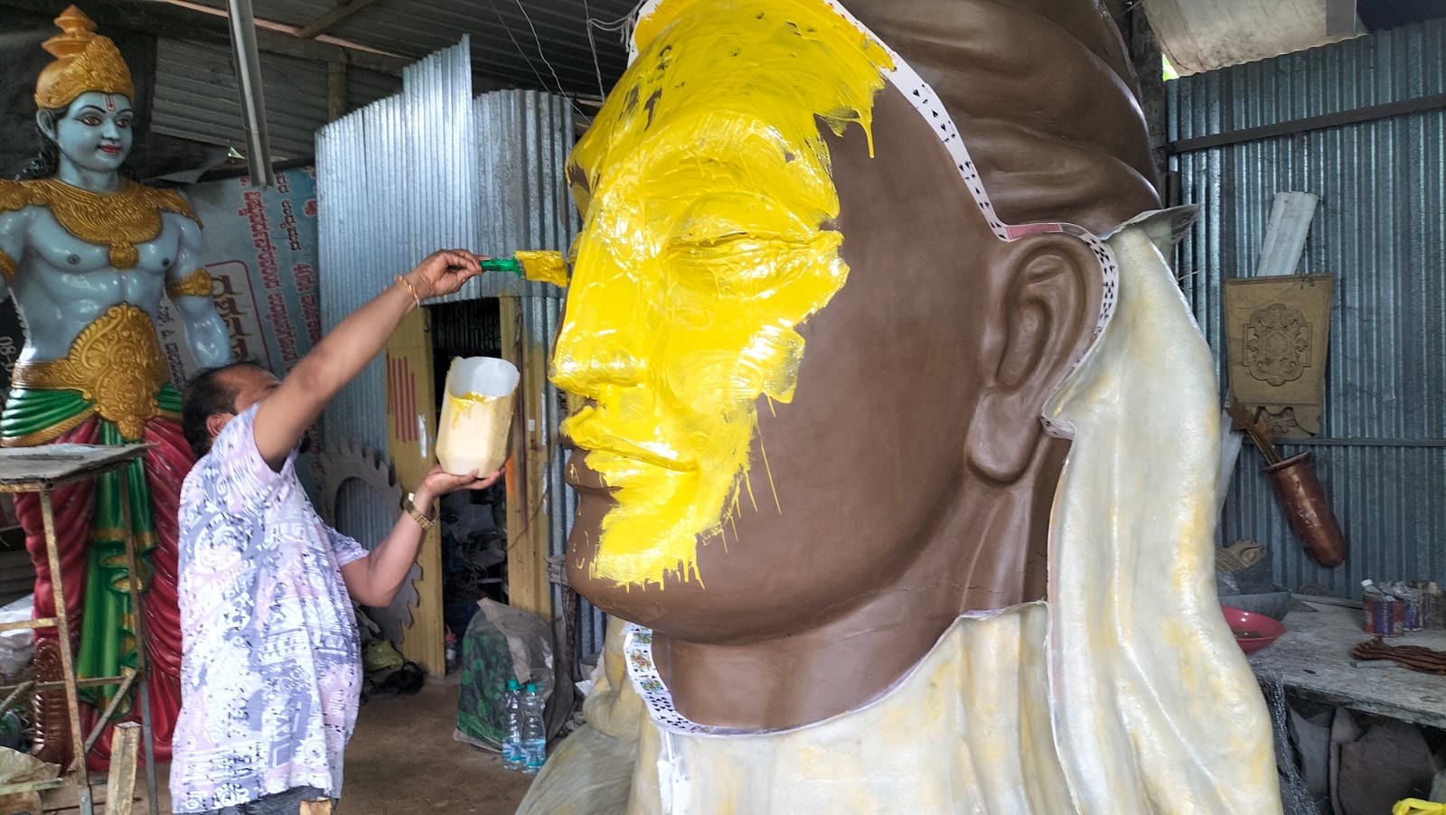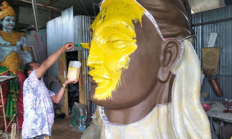 ಬಂಟ್ವಾಳ: ಈ ಬಾರಿಯ ಮಂಗಳೂರು ದಸರಾ ಮೆರವಣಿಗೆಗೆ ವಿನೂತನ ಸ್ತಬ್ಧಚಿತ್ರ, ಆದಿಯೋಗಿಯ ವಿಗ್ರಹಕ್ಕೆ ಯುವ ಚಿತ್ರ ಕಲಾವಿದ ಬಂಟ್ವಾಳದ ಮನೋಜ್ ಕನಪಾಡಿ ಅವರಿಂದ ಅಂತಿಮ ಸ್ಪರ್ಶ.