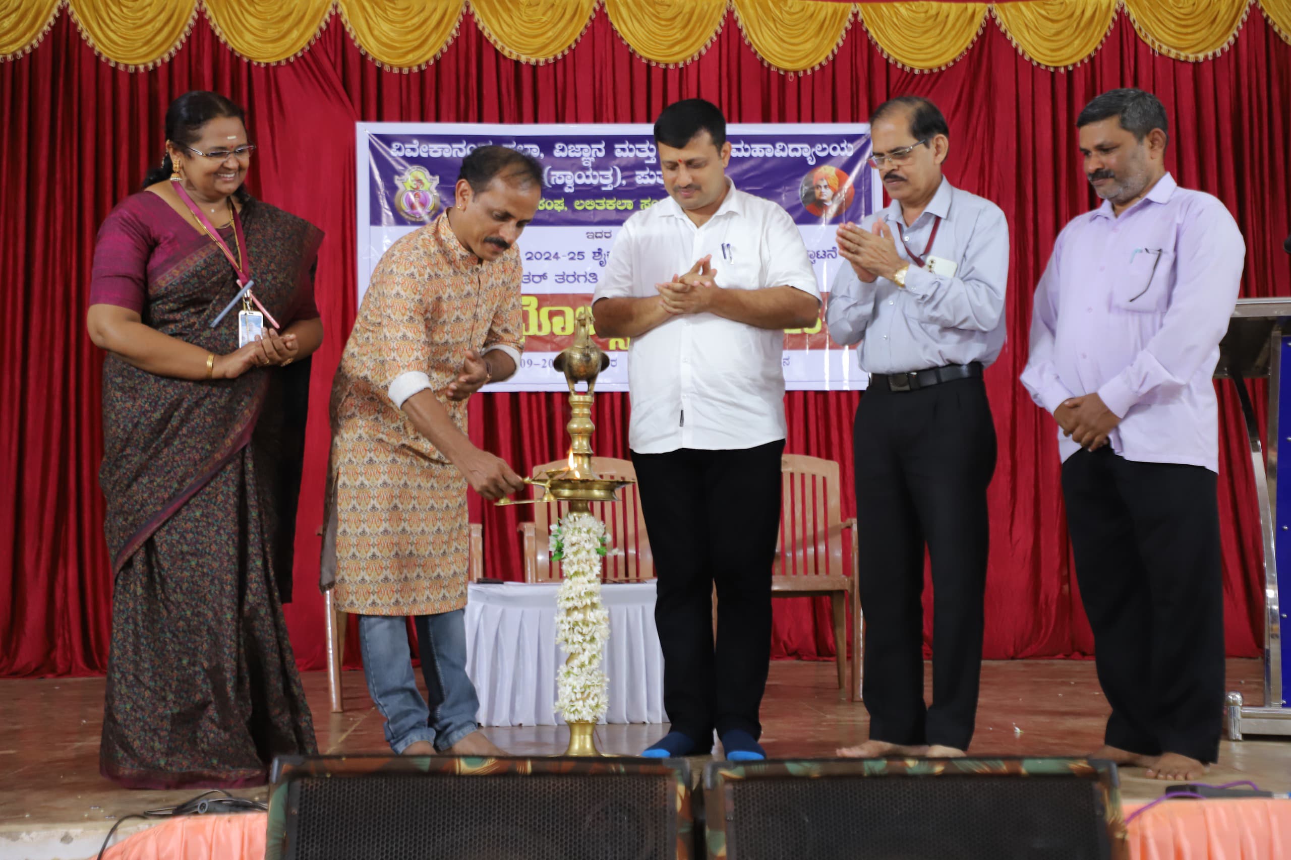 ಇವರು ವಿವೇಕಾನಂದ ಕಲಾ,ವಿಜ್ಞಾನ ಮತ್ತು ವಾಣಿಜ್ಯ ಮಹಾವಿದ್ಯಾಲಯ (ಸ್ವಾಯತ್ತ) ಇಲ್ಲಿ ಲಲಿತ ಕಲಾ ಸಂಘ ವಿದ್ಯಾರ್ಥಿ ಸಂಘ ಮತ್ತು ಐಕ್ಯೂಎಸಿ ಘಟಕದ ಸಹಯೋಗದಲ್ಲಿ ನಡೆದ ಲಲಿತಕಲಾ ಸಂಘದ 2024-25 ಶೈಕ್ಷಣಿಕ ವರ್ಷದ ಚಟುವಟಿಕೆಗಳ ಉದ್ಘಾಟನೆ ಹಾಗೂ ಅಂತರ್ ತರಗತಿ ಸಾಂಸ್ಕೃತಿಕ ಸ್ಪರ್ಧೆಗಳ ಶುಭಾರಂಭ ಪ್ರತಿಭೋತ್ಸವ 2024-25 ಕಾರ್ಯಕ್ರಮದಲ್ಲಿ ಉದ್ಘಾಟಕರಾಗಿ ಭಾಗವಹಿಸಿ ಮಾತನಾಡಿದರು.