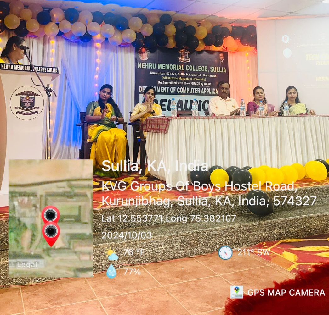 ವೇದಿಕೆಯಲ್ಲಿ ಬಿ.ಸಿ.ಎ ವಿಭಾಗದ ಮುಖ್ಯಸ್ಥೆ ಹಾಗೂ ಸಂಯೋಜಕಿ ಭವ್ಯ ಮನು ಪೆರುಮುಂಡ, ಕಂಪ್ಯೂಟರ್ ಸೈನ್ಸ್ ವಿಭಾಗದ ಮುಖ್ಯಸ್ಥೆ ದೀಕ್ಷಾ ಹಾಗೂ ಉಪನ್ಯಾಸಕರಾದ ಕುಮಾರಿ ನವ್ಯ, ಕುಮಾರಿ ರಕ್ಷಾ ಉಪಸ್ಥಿತರಿದ್ದರು.