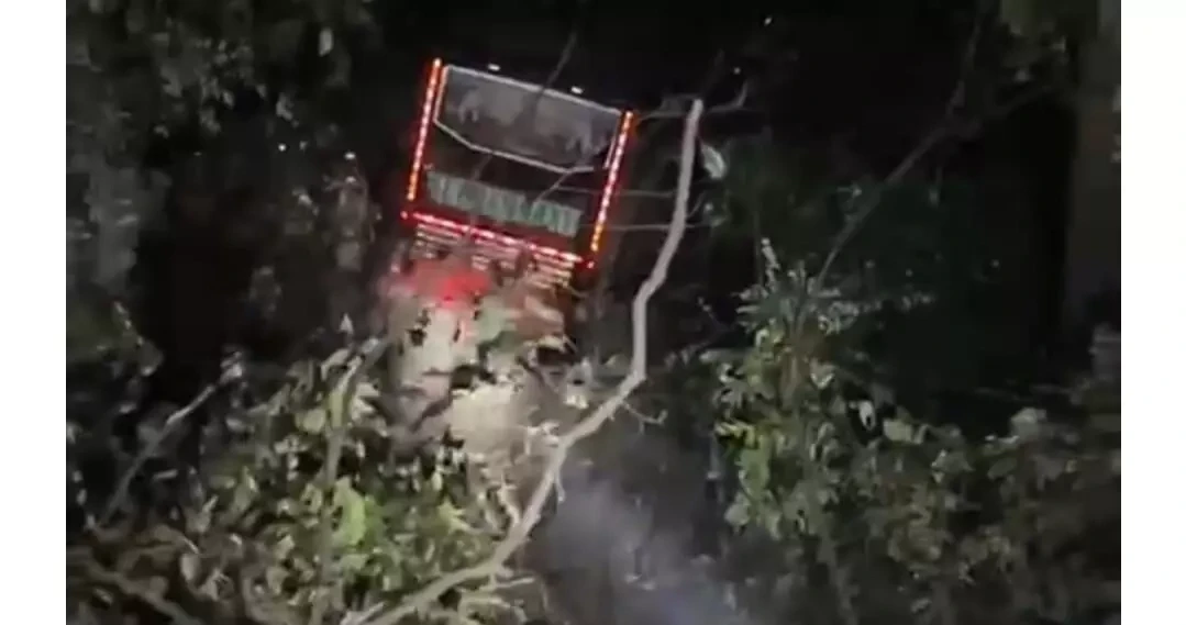 ಘಟನೆಯಲ್ಲಿ ಬಸ್ ನಿರ್ವಾಹಕ ಸಣ್ಣಪುಟ್ಟ ಗಾಯಗಳೊಂದಿಗೆ ಅಪಾಯದಿಂದ ಪಾರಾಗಿದ್ದಾರೆ.