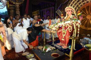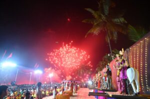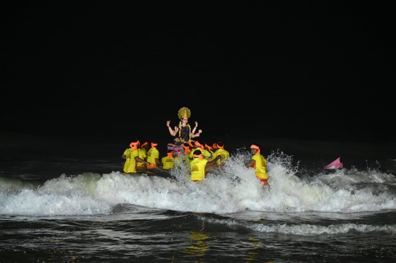 ಬಳಿಕ ಬೀಚ್ ನಲ್ಲಿ ವಿಶೇಷವಾಗಿ ನಿರ್ಮಿಸಿದ ಪೀಠಗಳಲ್ಲಿ ಸ್ಥಾಪಿಸಿ ಗಂಗಾರತಿ , ಸಮುದ್ರಾರತಿ ಹಾಗು ವಿಸರ್ಜನಾ ಪೂಜೆ ನೆರವೇರಿಸಲಾಯಿತು. ಈ ವೇಳೆ ದೇವತಾ ಮೂರ್ತಿಗಳಿಗೆ ಡ್ರೋಣ್ ಮೂಲಕ ಪುಷ್ಪಾರ್ಚನೆ ನೆರವೇರಿಸಲಾಯಿತು. ಆಕರ್ಷಕ ಸುಡುಮದ್ದು ಪ್ರದರ್ಶನ, ಲೇಸರ್ ಲೈಟ್ ಪ್ರದರ್ಶನ ನಡೆಯಿತು.