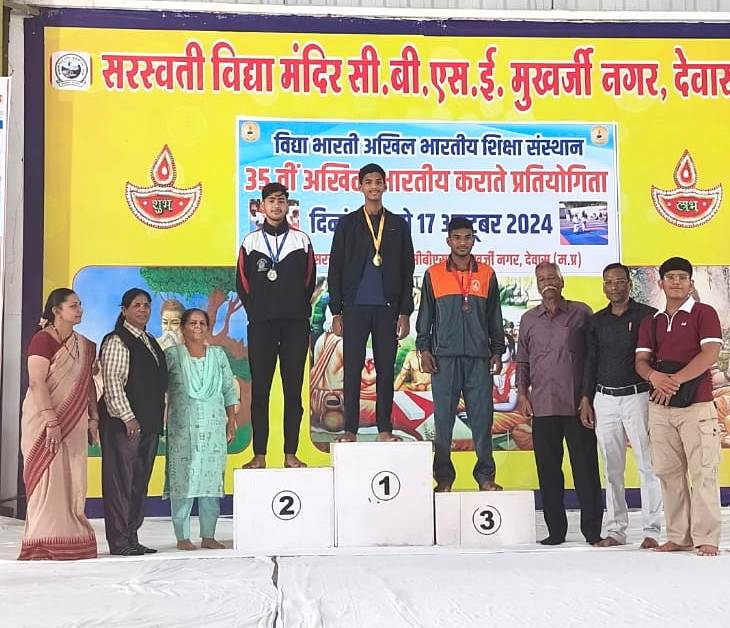 ಪುತತೂರು : ವಿದ್ಯಾಭಾರತಿ ಅಖಿಲ ಭಾರತ ಶಿಕ್ಷಾಣ ಸಂಸ್ಥಾನ ಇವರ ಸಹಯೋಗದಲ್ಲಿ ಮಧ್ಯಪ್ರದೇಶದ ದೇವಾಸ್ನಲ್ಲಿ ನಡೆದ ರಾಷ್ಟçಮಟ್ಟದ ಕರಾಟೆ ಸ್ಪರ್ಧೆಯಲ್ಲಿ 19ರ ವಯೋಮಿತಿಯಲ್ಲಿ ದಕ್ಷಿಣ ಮಧ್ಯಕ್ಷೇತ್ರವನ್ನು ಪ್ರತಿನಿಧಿಸಿದ ನರೇಂದ್ರ ಪದವಿ ಪೂರ್ವ ಕಾಲೇಜಿನ ದ್ವಿತೀಯ ವಿಜ್ಞಾನ ವಿಭಾಗದ ವಿದ್ಯಾರ್ಥಿಯಾದ ನಿಕ್ಷೇಪ್ ಕೃಷ್ಣ ಇವರು ಚಿನ್ನದ ಪದಕದೊಂದಿಗೆ ಪ್ರಥಮ ಸ್ಥಾನವನ್ನು ಪಡೆದು ದೆಹಲಿಯಲ್ಲಿ ನಡೆಯುವ ಸ್ಕೂಲ್ ಗೇಮ್ಸ್ ಫೆಡರೇಶನ್ ಆಫ್ ಇಂಡಿಯಾಗೆ ಆಯ್ಕೆಯಾಗಿರುತ್ತಾರೆ.