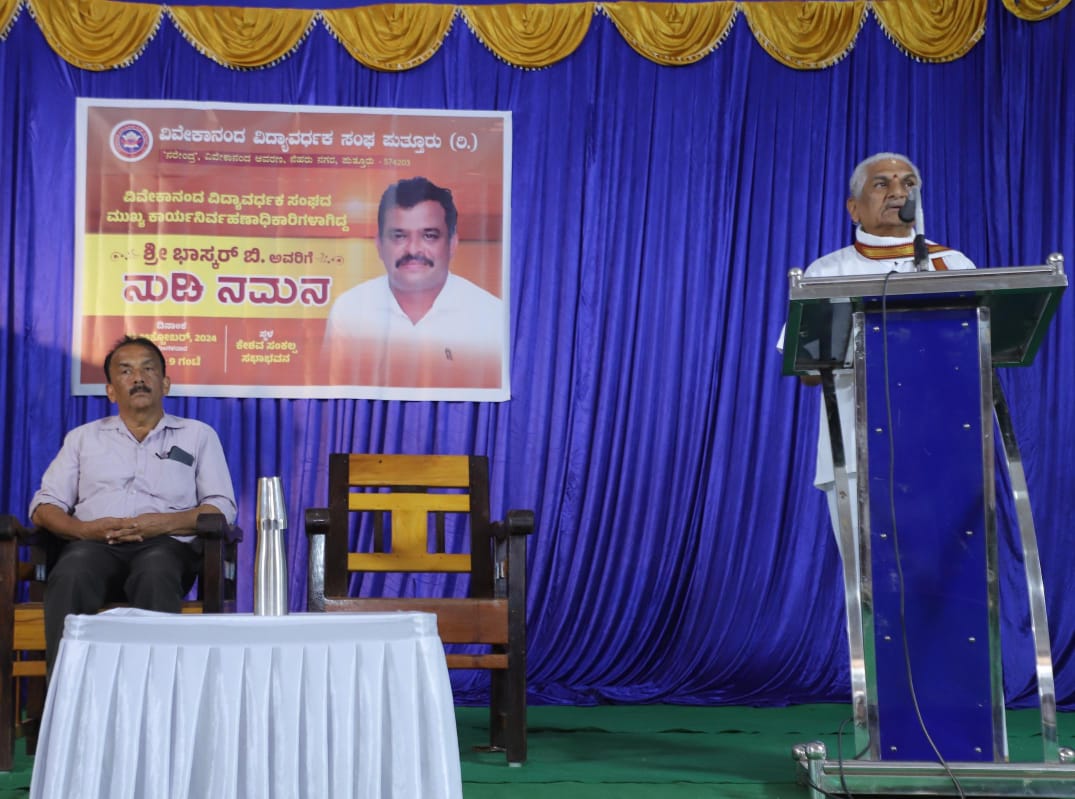 ಇವರು ವಿವೇಕಾನಂದ ವಿದ್ಯಾವರ್ಧಕ ಸಂಘದ ವತಿಯಿಂದ ವಿವೇಕಾನಂದ ಕಾಲೇಜಿನ ಕೇಶವ ಸಂಕಲ್ಪ ಸಭಾಂಗಣದಲ್ಲಿ ಇತ್ತೀಚೆಗೆ ಮಂಗಳೂರಿನ ಕೆಪಿಟಿ ಬಳಿ ನಡೆದ ಅಪಘಾತದಲ್ಲಿ ಮೃತರಾದ ವಿವೇಕಾನಂದ ವಿದ್ಯಾವರ್ಧಕ ಸಂಘದ ಮುಖ್ಯ ಕಾರ್ಯನಿರ್ವಹಣಾಧಿಕಾರಿ ದಿ.ಭಾಸ್ಕರ್ ಬಿ ಅವರ ನುಡಿ ನಮನ ಕಾರ್ಯಕ್ರಮದಲ್ಲಿ ಮಾತನಾಡಿದರು.