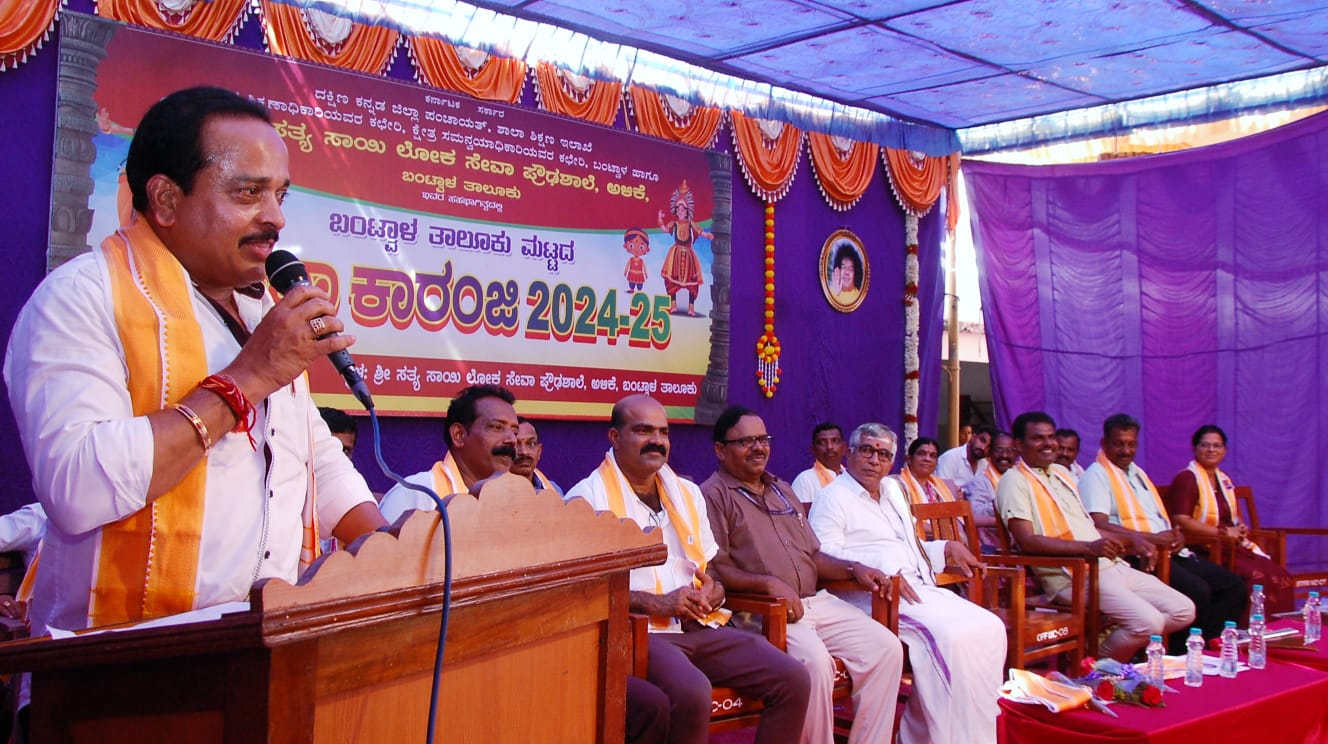 ಅವರು ದಕ್ಷಿಣ ಕನ್ನಡ ಜಿಲ್ಲಾ ಪಂಚಾಯತ್, ಶಾಲಾ ಶಿಕ್ಷಣ ಇಲಾಖೆ, ಕ್ಷೇತ್ರ ಶಿಕ್ಷಣಾಧಿಕಾರಿಯವರ ಕಛೇರಿ, ಕ್ಷೇತ್ರ ಸಮನ್ವಯಾಧಿಕಾರಿ ಯವರ ಕಛೇರಿ ಬಂಟ್ವಾಳ ಹಾಗೂ ಶ್ರೀ ಸತ್ಯ ಸಾಯಿ ಲೋಕ ಸೇವಾ ಪ್ರೌಢಶಾಲೆ ಅಳಿಕೆ ಬಂಟ್ವಾಳ ತಾಲೂಕು ಇದರ ಸಹಭಾಗಿತ್ವದಲ್ಲಿ ಬಂಟ್ವಾಳ ತಾಲೂಕಿನ ಅಳಿಕೆ ಶ್ರೀ ಸತ್ಯ ಸಾಯಿ ಲೋಕ ಸೇವಾ ಪ್ರೌಢ ಶಾಲೆಯಲ್ಲಿ ನಡೆದ ಬಂಟ್ವಾಳ ತಾಲೂಕು ಮಟ್ಟದ ಪ್ರತಿಭಾ ಕಾರಂಜಿ 2024 – 25 ಕಾರ್ಯಕ್ರಮದ ಅಧ್ಯಕ್ಷತೆ ವಹಿಸಿ ಕಾರ್ಯಕ್ರಮವನ್ನು ಉದ್ಘಾಟಿಸಿ ಮಾತನಾಡಿದರು.