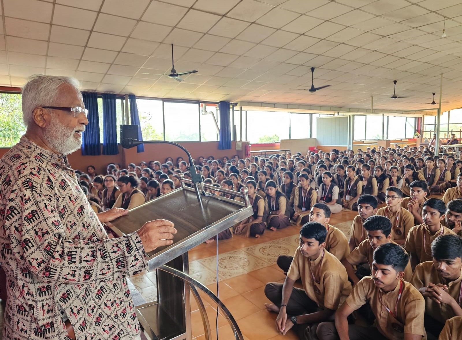 ಪರಪೀಡನೆ ಮಾಡದೆ ಪರೋಪಕಾರ ಮಾಡುತ್ತಾ ಮುಕ್ತಿಯತ್ತ ಸಾಗುವ ಜೀವನ ಮಾರ್ಗವೇ ಧರ್ಮ. ನಮ್ಮ ಹಿರಿಯರು ತೋರಿಸಿದ ದಾರಿಯಂತೆ ನಡೆಯುವುದನ್ನು ಬಿಟ್ಟು ಕೇವಲ ಯಂತ್ರದAತೆ ಜೀವನ ಸಾಗಿಸಬಾರದು. ಸನಾತನ ಧರ್ಮದಂತೆ ನಡೆದು ಒಳಿತು ಕೆಡುಕುಗಳ ಬಗ್ಗೆ ಯೋಚಿಸಿ ಬಾಳುವ ಕ್ರಮ ಕಲಿಯಬೇಕು ಎಂದು ನುಡಿದರು. ಕಾರ್ಯಕ್ರಮದ ಅಧ್ಯಕ್ಷತೆ ವಹಿಸಿದ್ದ ಅಂಬಿಕಾ ಸಮೂಹ ಶಿಕ್ಷಣ ಸಂಸ್ತೆಗಳ ಅಧ್ಯಕ್ಷ ಸುಬ್ರಹ್ಮಣ್ಯ ನಟ್ಟೋಜ ಮಾತನಾಡಿ ಶಿಕ್ಷಣದ ಜೊತೆಗೆ ಧಾರ್ಮಿಕ ಶಿಕ್ಷಣವು ದೊರೆತಾಗ ವ್ಯಕ್ತಿತ್ವ ವಿಕಸನಗೊಳ್ಳುತ್ತದೆ. ಸಂಸ್ಥೆಯಲ್ಲಿ ವಿದ್ಯಾರ್ಥಿಗಳಿಗೆ ಹಿಂದುತ್ವ, ಭಗವದ್ಗೀತೆಯಂತಹ ವಿಚಾರಗಳ ಬಗೆಗೆ ಜ್ಞಾನ ದೊರಕುತ್ತದೆ ಎಂದರು.