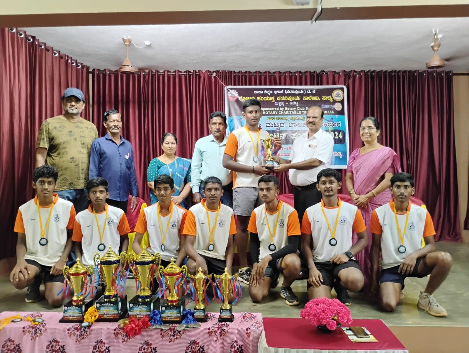 ತಂಡದಲ್ಲಿ ಪ್ರಥಮ ಪಿಯುಸಿ ವಿಜ್ಞಾನ ವಿಭಾಗದ ವಿದ್ಯಾರ್ಥಿಗಳಾದ ಹೇಮಂತ್ ಆರ್ ಗೌಡ, ವೇದಾಂತ್ ಎಸ್.ವಿ, ಕೆ ವೈಭವ್ ರೈ, ತನೀಶ್ ಕುಮಾರ್ ಬಿ, ಮನೀಶ್ ಡಿ.ವಿ, ಅಜೇಯ್ ಎಸ್.ಕೆ, ದೈವಿಕ್ ಜಿ ಹಾಗೂ ಪ್ರಥಮ ವಾಣಿಜ್ಯ ವಿಭಾಗದ ಧನುಷ್. ಎಸ್ ಎಸ್ ಭಾಗವಹಿಸಿದ್ದರು. ತಂಡವನ್ನು ಪ್ರತಿನಿಧಿಸಿದ ಪ್ರಥಮ ವಿಜ್ಞಾನ ವಿಭಾಗದ ಹೇಮಂತ್ ಆರ್ ಗೌಡ ರಾಜ್ಯಮಟ್ಟಕ್ಕೆ ಆಯ್ಕೆಯಾಗಿರುತ್ತಾರೆ. ತಂಡವು ಕಾಲೇಜಿನ ದೈಹಿಕ ಶಿಕ್ಷಣ ನಿರ್ದೇಶಕರಾದ ರವಿಶಂಕರ್, ಡಾ.ಜ್ಯೋತಿ ಮತ್ತು ಯತೀಶ್ ಇವರ ನೇತೃತ್ವದಲ್ಲಿ ತರಬೇತಿಯನ್ನು ಪಡೆದಿರುತ್ತದೆ. ವಿಜೇತ ವಿದ್ಯಾರ್ಥಿಗಳನ್ನು ಕಾಲೇಜು ಆಡಳಿತ ಮಂಡಳಿ, ಪ್ರಾಂಶುಪಾಲರು, ಉಪಪ್ರಾಂಶುಪಾಲರು ಹಾಗೂ ಉಪನ್ಯಾಸಕ, ಉಪನ್ಯಾಸಕೇತರ ವೃಂದದವರು ಅಭಿನಂದಿಸಿರುತ್ತಾರೆ.
