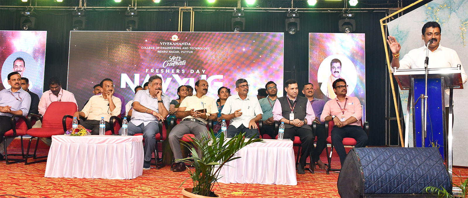 ಸಮಾರಂಭದ ಅಧ್ಯಕ್ಷತೆ ವಹಿಸಿದ್ದ ಪುತ್ತೂರಿನ ವಿವೇಕಾನಂದ ವಿದ್ಯಾವರ್ಧಕ ಸಂಘದ ಕಾರ್ಯದರ್ಶಿ ಡಾ.ಕೆ.ಎಂ.ಕೃಷ್ಣ ಭಟ್ ಮಾತನಾಡಿ ಅನೇಕ ಅಗ್ನಿಪರೀಕ್ಷೆಗಳನ್ನು ದಾಟಿ ಇಂಜಿನಿಯರಿAಗ್ ಶಿಕ್ಷಣಕ್ಕಾಗಿ ಇಲ್ಲಿ ಬಂದಿದ್ದೀರಿ ಈ ನಾಲ್ಕು ವರ್ಷ ನಿಮ್ಮ ಬದುಕಿನ ನಿರ್ಣಾಯಕ ದಿನಗಳಾಗಿರುತ್ತವೆ ಎಂದರು. ಒಂದು ಕಡೆ ಕನಸುಗಳು ಇನ್ನೊಂದು ಕಡೆ ವಯೋಸಹಜ ಆಕರ್ಷಣೆಗಳು ನಿಮ್ಮ ಮೇಲೆ ದಾಳಿ ಮಾಡುತ್ತಲೇ ಇರುತ್ತವೆ. ಮನಸ್ಸಿನ ಈ ಕುರುಕ್ಷೇತ್ರ ಯುದ್ದದಲ್ಲಿ ಗೆದ್ದು ಪಾಂಡವರಾಗಲು ಪ್ರಯತ್ನಿಸಿ ಎಂದರು ಕಾಲೇಜು ಆಡಳಿತ ಮಂಡಳಿಯ ನಿರ್ದೇಶಕರಾದ ರವಿಕೃಷ್ಣ.ಡಿ.ಕಲ್ಲಾಜೆ, ಸತ್ಯನಾರಾಯಣ ಭಟ್, ತರಬೇತಿ ಮತ್ತು ನೇಮಕಾತಿ ವಿಭಾಗ ಮುಖ್ಯಸ್ಥೆ ಪ್ರೊ.ವಂದನಾ ಶಂಕರ್, ಎಲ್ಲಾ ವಿಭಾಗಗಳ ಮುಖ್ಯಸ್ಥರು ಮತ್ತು ವಿದ್ಯಾರ್ಥಿ ಕ್ಷೇಮಪಾಲನಾಧಿಕಾರಿ ಡಾ.ಚೇತನ್.ಪಿ.ಡಿ ವೇದಿಕೆಯಲ್ಲಿ ಉಪಸ್ಥಿತರಿದ್ದರು.