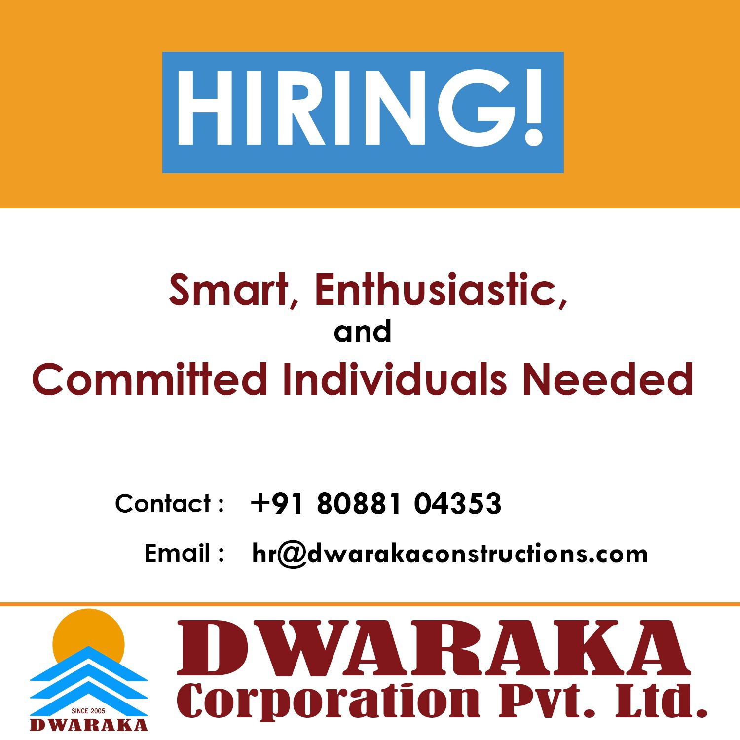 JOB OPPORTUNITIES : ದ್ವಾರಕಾ ಕಾರ್ಪೋರೇಶನ್ ಪ್ರೈ. ಲಿ. ನಲ್ಲಿ ಉದ್ಯೋಗಾವಕಾಶ..!!!-ಕಹಳೆ ನ್ಯೂಸ್
