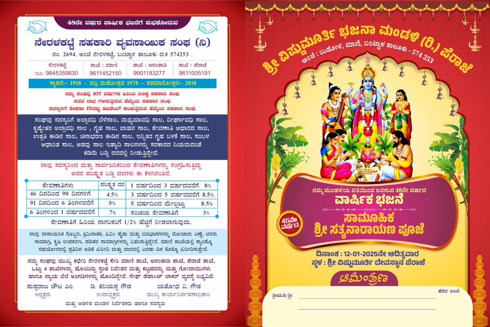 ಪೆರಾಜೆ : ಶ್ರೀ ವಿಷ್ಣುಮೂರ್ತಿ ಭಜನಾ ಮಂಡಳಿ(ರಿ.) ಪೆರಾಜೆ ವತಿಯಿಂದ ಜ.12ರಂದು 48ನೇ ವರ್ಷದ ವಾರ್ಷಿಕ ಭಜನೆ ಹಾಗೂ ಸಾಮೂಹಿಕ 45ನೇ ವರ್ಷದ ಶ್ರೀ ಸತ್ಯನಾರಾಯಣ ಪೂಜೆ ಶ್ರೀ ವಿಷ್ಣುಮೂರ್ತಿ ದೇವಸ್ಥಾನ ಪೆರಾಜೆಯಲ್ಲಿ ನಡೆಯಲಿದೆ.
