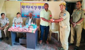 ಉಪ್ಪಿನಂಗಡಿ: ಉಪ್ಪಿನಂಗಡಿ ಗೃಹರಕ್ಷಕದಳದ ವಾರದ ಕವಾಯತಿಗೆ ದ.ಕ.ಜಿಲ್ಲಾ ಸಮಾದೇಷ್ಠರಾದ ಮುರಲೀ ಮೋಹನ್ ಚೂಂತಾರುರವರು ಭೇಟಿ ನೀಡಿದರು ಕಳೆದ ಹತ್ತು ವರ್ಷಗಳಿಂದ ಸಮಾದೇಷ್ಠರಾಗಿ ಸೇವೆ ಸಲ್ಲಿಸಿ ಈ ತಿಂಗಳಾಂತ್ಯಕ್ಕೆ ಇವರ ಅಧಿಕಾರಾವಧಿ ಮುಕ್ತಾಯ ಹಿನ್ನೆಲೆಯಲ್ಲಿ ಉಪ್ಪಿನಂಗಡಿ ಗೃಹರಕ್ಷಕ ಘಟಕದಿಂದ ಸರಳವಾಗಿ ಸನ್ಮಾನಿಸುವ ಮೂಲಕ ಬಿಳ್ಕೊಡಲಾಯಿತು ಈ ಸಂದರ್ಭದಲ್ಲಿ ಸನ್ಮಾನ ಸ್ವೀಕರಿಸಿ ಮಾತನಾಡಿದ ಡಾ.ಚುಂತಾರು ಹತ್ತು ವರ್ಷಗಳ ಅವಧಿಯಲ್ಲಿ ಇಲಾಖೆಗೆ ಸಹಕಾರ ನೀಡಿದ ಎಲ್ಲರಿಗೂ ಅಭಿನಂದನೆ ಸಲ್ಲಿಸಿದರು ಗೃಹರಕ್ಷಕರು ಮುಂದಕ್ಕೆ ಇನ್ನೂ ಉತ್ತಮ ರೀತಿಯಲ್ಲಿ ಕರ್ತವ್ಯ ನಿರ್ವಹಿಸಿ ಎಂದು ಶುಭ ಹಾರೈಸಿದರು.