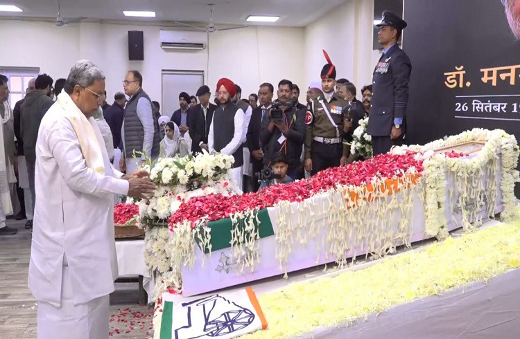 ನವದೆಹಲಿ: ಡಿ.26ರಂದು ನಿಧನರಾದಂತ ಮಾಜಿ ಪ್ರಧಾನಿ ಮನಮೋಹನ್ ಸಿಂಗ್ ಅವರ ಅಂತ್ಯಸಂಸ್ಕಾರವನ್ನು ಇಂದು ನೆರವೇರಿಸಲಾಗುತ್ತದೆ. ಇದಕ್ಕೂ ಮುನ್ನ ಅವರ ಪಾರ್ಥೀವ ಶರೀರದ ಅಂತಿಮ ದರ್ಶನವನ್ನು ಕರ್ನಾಟಕದ ಮುಖ್ಯಮಂತ್ರಿ ಸಿದ್ಧರಾಮಯ್ಯ ಅವರು ಪಡೆದರು.
