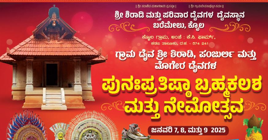 ಜ.07ರಿಂದ ಶ್ರೀ ಶಿರಾಡಿ ಮತ್ತು ಪರಿವಾರ ದೈವಗಳ ದೈವಸ್ಥಾನದ ಗ್ರಾಮ ದೈವ ಶ್ರೀ ಶಿರಾಡಿ, ಪಂಜುರ್ಲಿ ಮತ್ತು ಮೊಗೇರ ದೈವಗಳ ಪುನಃಪ್ರತಿಷ್ಠಾ ಬ್ರಹ್ಮಕಲಶ ಮತ್ತು ನೇಮೋತ್ಸವ – ಕಹಳೆ ನ್ಯೂಸ್