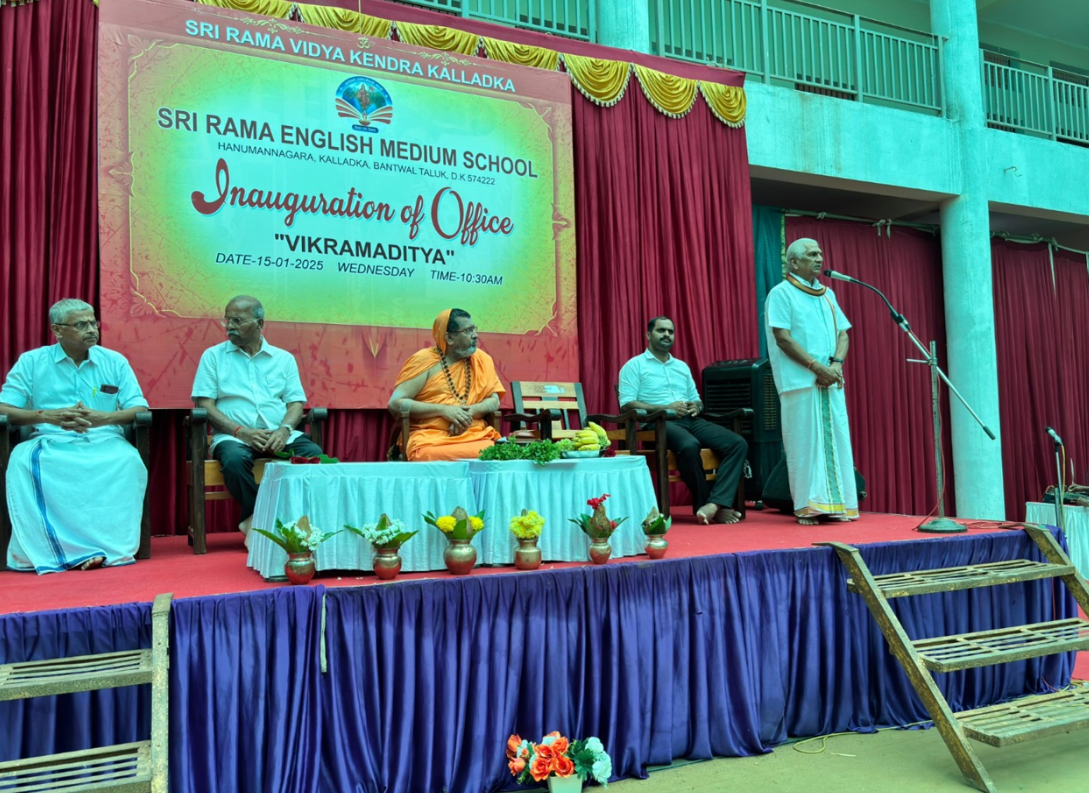 ಬಂಟ್ವಾಳ: ಶ್ರೀರಾಮ ಆಂಗ್ಲ ಮಾಧ್ಯಮ ಶಾಲೆಯ ಕಛೇರಿ ವಿಕ್ರಮಾದಿತ್ಯದ ಉದ್ಘಾಟನಾ ಸಮಾರಂಭವು ಶ್ರೀ ಶ್ರೀ ಸಚ್ಚಿದಾನಂದ ಭಾರತೀ ಸ್ವಾಮೀಜಿ ಎಡನೀರು ಮಠ, ಕಾಸರಗೋಡು ಇವರ ದಿವ್ಯ ಹಸ್ತದಿಂದ ನೆರವೇರಿತು. ಮೊದಲಿಗೆ ಗಣಪತಿ ಹೋಮವು ಶ್ರೀ ಸೂರ್ಯ ನಾರಾಯಣ ಭಟ್ ಕಶೆಕೋಡಿ ಇವರ ನೇತೃತ್ವದಲ್ಲಿ ನಡೆಯಿತು.