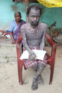 ಉಪ್ಪಿನಕುದ್ರುವಿನ ನಿತ್ಯಾನಂದ (38)ಎಂಬವರು ಈ ವಿಚಿತ್ರ ಕಾಯಿಲೆಯಿಂದ ನರಳುತ್ತಿದ್ದಾರೆ,ಬಾಲ್ಯದ ದಿನಗಳಿಂದಲೂ ಶ್ರಮಜೀವಿ.ತಂದೆ ಪರಮೇಶ್ವರ, ತಾಯಿ ಕಮಲ ಸಹಿತ ಮೂವರು ಸಹೋದರರೊಂದಿಗೆ ಉಪ್ಪಿನಕುದ್ರು ಹಾಲು ಡೈರಿ ಸಮೀಪ ನೆಲೆಸಿದವರು.ಇಬ್ಬರು ಹಿರಿಯ ಸಹೋದರರು ಅನಾರೋಗ್ಯದಿಂದ ಬೆನ್ನು ಬೆನ್ನಿಗೆ ಗತಿಸಿದ ಬಳಿಕ ಮನೆಯ ಜವಾಬ್ದಾರಿ ಹೊತ್ತು ಕೊಂಡಿದ್ದಾರೆ.