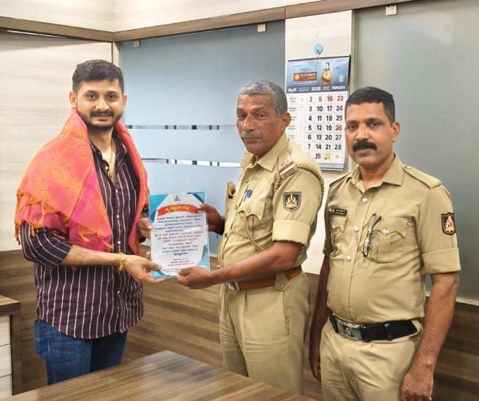 ಸಂಚಾರ ಪೊಲೀಸ್ ಠಾಣೆಯ ಎಎಸ್ಐ ಚಿದಾನಂದ ಮತ್ತು ಹೆಡ್ ಕಾನ್ಸ್ಟೇಬಲ್ ದಿನೇಶ್ ಅವರು ಜಿಎಲ್ ಆಚಾರ್ಯ ಸಂಸ್ಥೆಗೆ ಭೇಟಿ ನೀಡಿ ಸಂಸ್ಥೆಯ ಆಡಳಿತ ನಿರ್ದೇಶಕ ಸುಧನ್ವ ಆಚಾರ್ಯ ಅವರಿಗೆ ಕೃತಜ್ಞತಾ ಪತ್ರ ನೀಡಿ ಅಭಿನಂದಿಸಿದರು. ಈ ವೇಳೆ ಉದಯ ರವಿ ಭಾಗಿಯಾಗಿದ್ದರು.