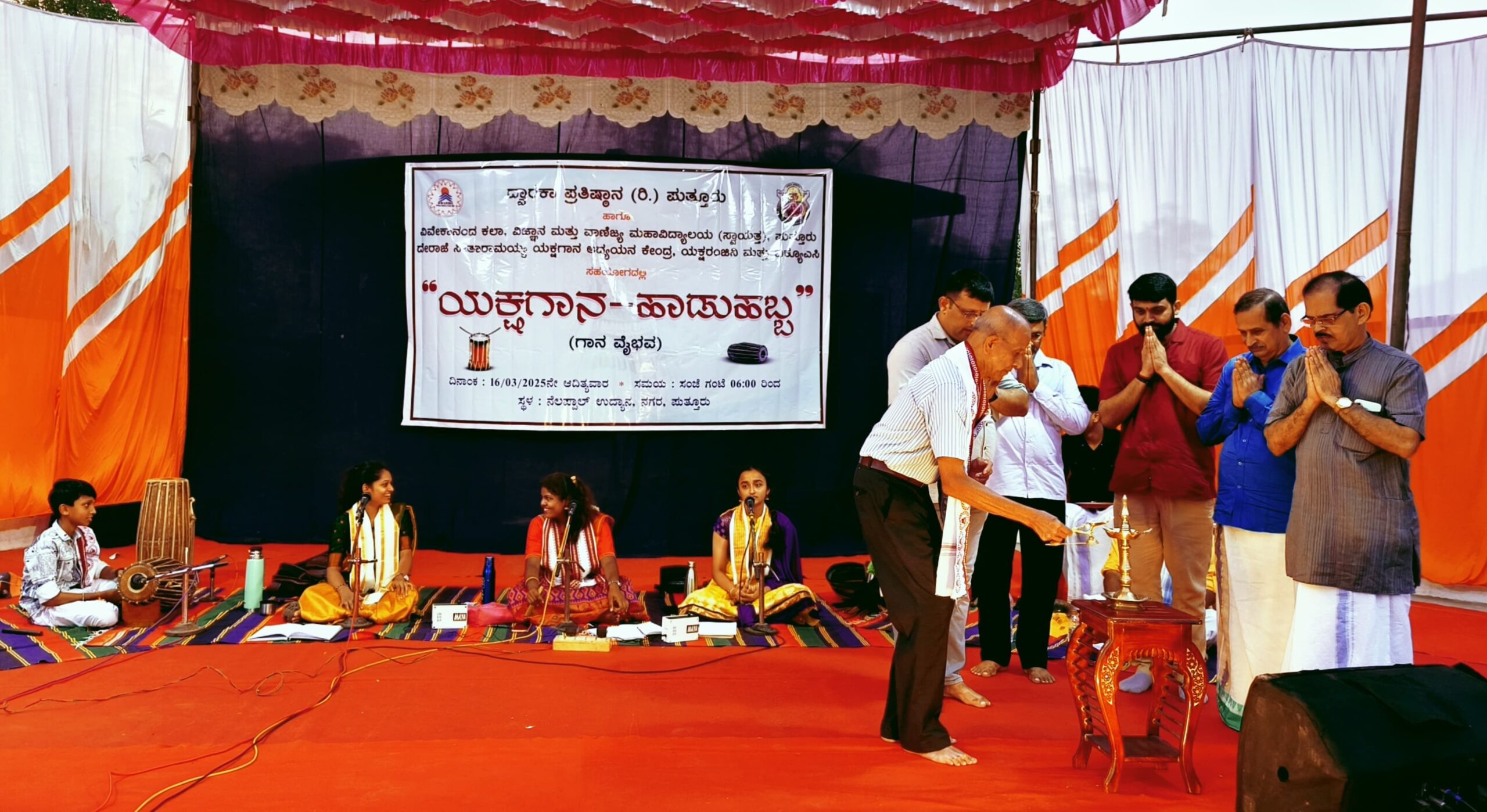 ಪುತ್ತೂರು ; ಮಾ-16-3-2025 ರಂದು ದ್ವಾರಕಾ ಕಾರ್ಪೋರೇಶನ್ ಪ್ರೈ ಲಿ. ಇದರ ಅಂಗ ಸಂಸ್ಥೆಯಾದ ದ್ವಾರಕಾ ಪ್ರತಿಷ್ಠಾನ (ರಿ) ಪುತ್ತೂರು ಮತ್ತು ವಿವೇಕಾನಂದ ಮಹಾವಿದ್ಯಾಲಯ (ಸ್ವಾಯತ್ತ) ಪುತ್ತೂರು ಇಲ್ಲಿನ ದೇರಾಜೆ ಸೀತಾರಾಮಯ್ಯ ಯಕ್ಷಗಾನ ಅಧ್ಯಯನ ಕೇಂದ್ರ, ಯಕ್ಷರಂಜಿನಿ ಹಾಗೂ ಐಕ್ಯೂಎಸಿ ವಿಭಾಗದ ಸಹಯೋಗದಲ್ಲಿ ಪುತ್ತೂರು ನಗರದ “ನೆಲಪ್ಪಾಲ್ ಉದ್ಯಾನ” ದಲ್ಲಿ “ಯಕ್ಷಗಾನ – ಹಾಡು ಹಬ್ಬ” ಗಾನ ವೈಭವದ ಕಾರ್ಯಕ್ರಮ ನಡೆಯಿತು.