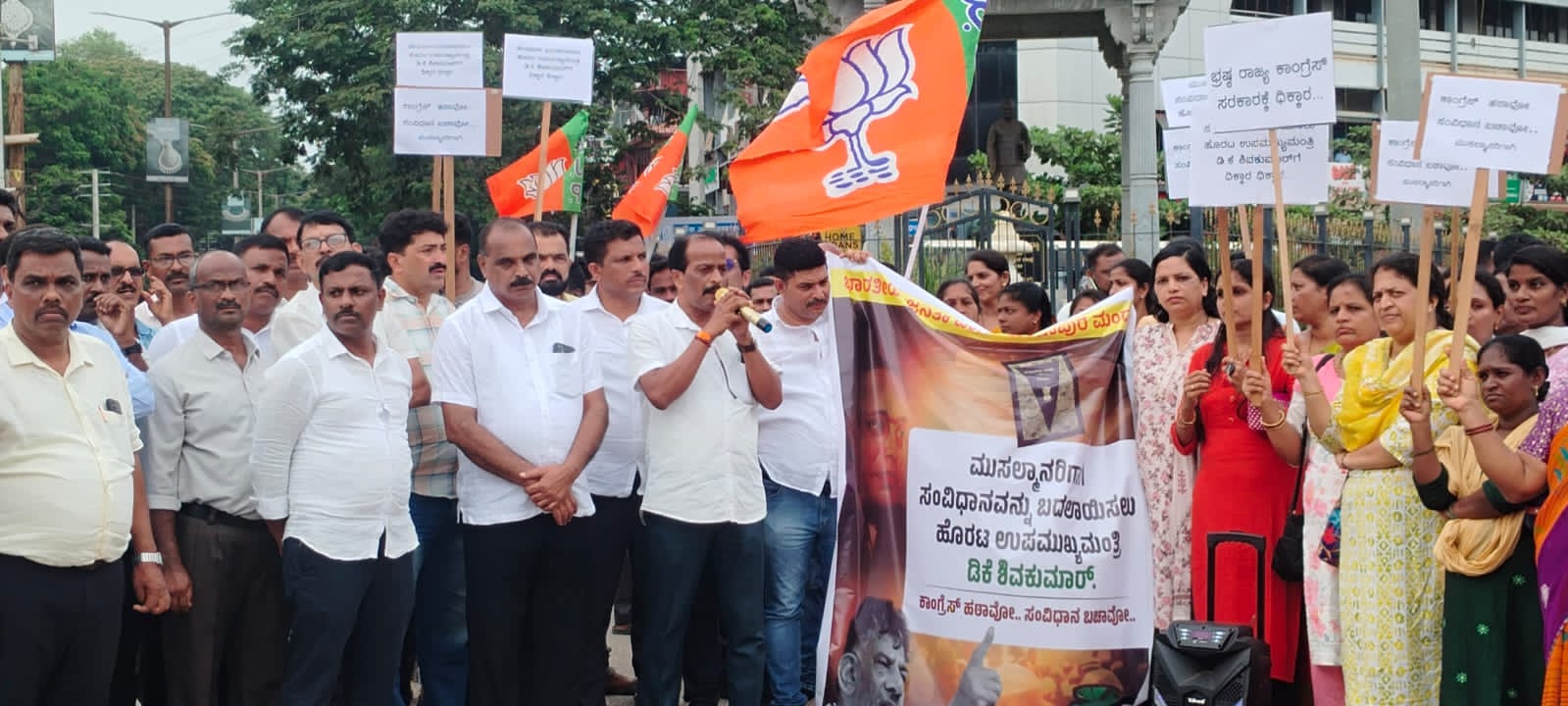 ಬಿಜೆಪಿ ಕುಂದಾಪುರ ಮಂಡಲ ಅಧ್ಯಕ್ಷ ಸುರೇಶ್ ಶೆಟ್ಟಿ ಗೋಪಾಡಿಯವರು ಸಂವಿಧಾನ ಬದಲಾಯಿಸುತ್ತೇನೆ ಎಂದು ಹೇಳಿಕೆ ನೀಡಿರುವ ಸಂವಿಧಾನ ವಿರೋಧಿ ಡಿಕೆ ಶಿವಕುಮಾರ್ ಅವರಿಗೆ ಧಿಕ್ಕಾರದ ಘೋಷಣೆಗಳ ಮೂಲಕ ಆಕ್ರೋಶ ವ್ಯಕ್ತಪಡಿಸಿದರು.