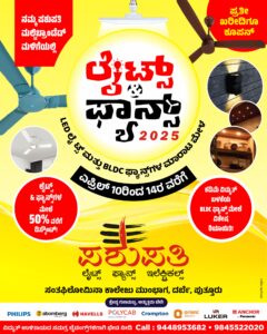 ಎ.10 ರಿಂದ 14ರ ವರೆಗೆ ಪಶುಪತಿ ಮಲ್ಟಿ ಬ್ರಾಂಡೆಡ್ ಮಳಿಗೆಯಲ್ಲಿ ” ಲೈಟ್ಸ್, ಫ್ಯಾನ್ಸ್ ಮಾರಾಟ ಮೇಳ ” – ಕಹಳೆ ನ್ಯೂಸ್