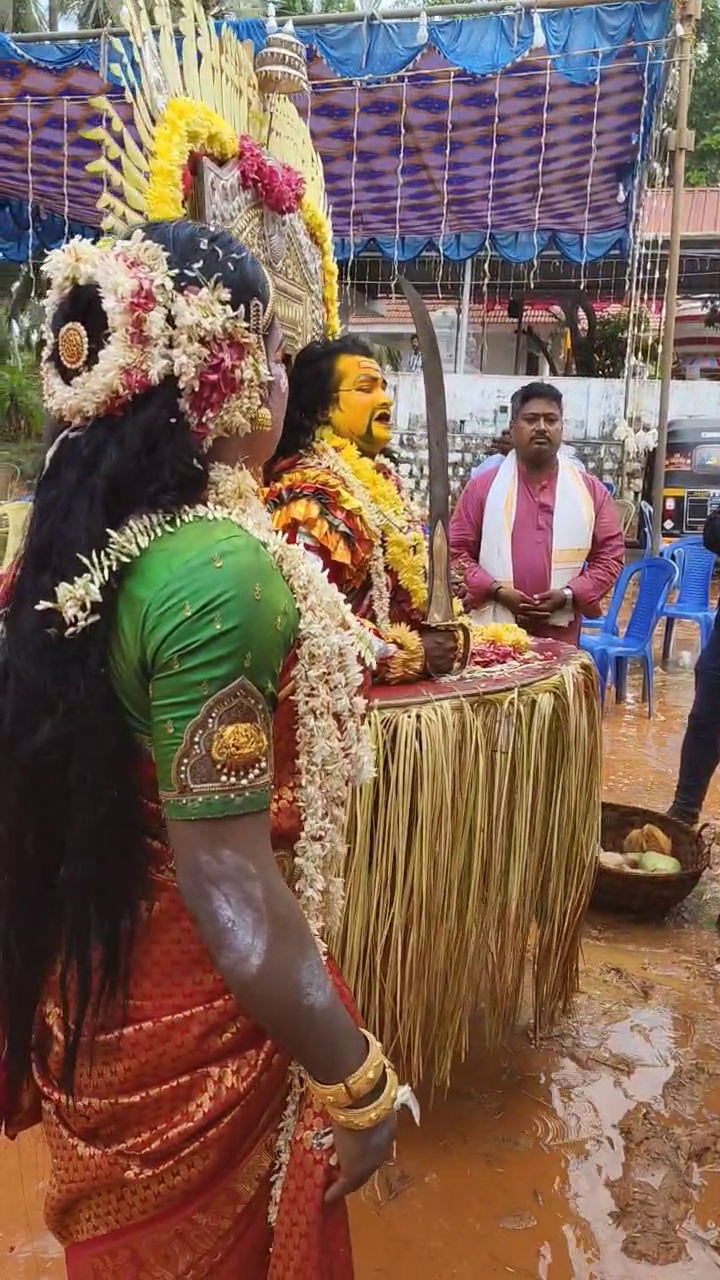 ಆದರೆ, ದೈವದ ನರ್ತನ ಸೇವೆ ಮಳೆಯ ನಡುವೆಯೇ ಮುಂದುವರಿಸಿಕೊಂಡು ಹೋಗಲಾಗಿದೆ. ನರ್ತನ ಸೇವೆ ನಡೆಯುತ್ತಿದ್ದ ಜಾಗದಲ್ಲಿ ಮಳೆ ನೀರು ತುಂಬಿಕೊಂಡು ಕೆಸರಾಗಿದ್ರೂ ದೈವದ ಪಾತ್ರಿಗಳು ತಮ್ಮ ನರ್ತನ ಸೇವೆಯನ್ನು ಪೂರ್ತಿಗೊಳಿಸಿದ್ದಾರೆ.