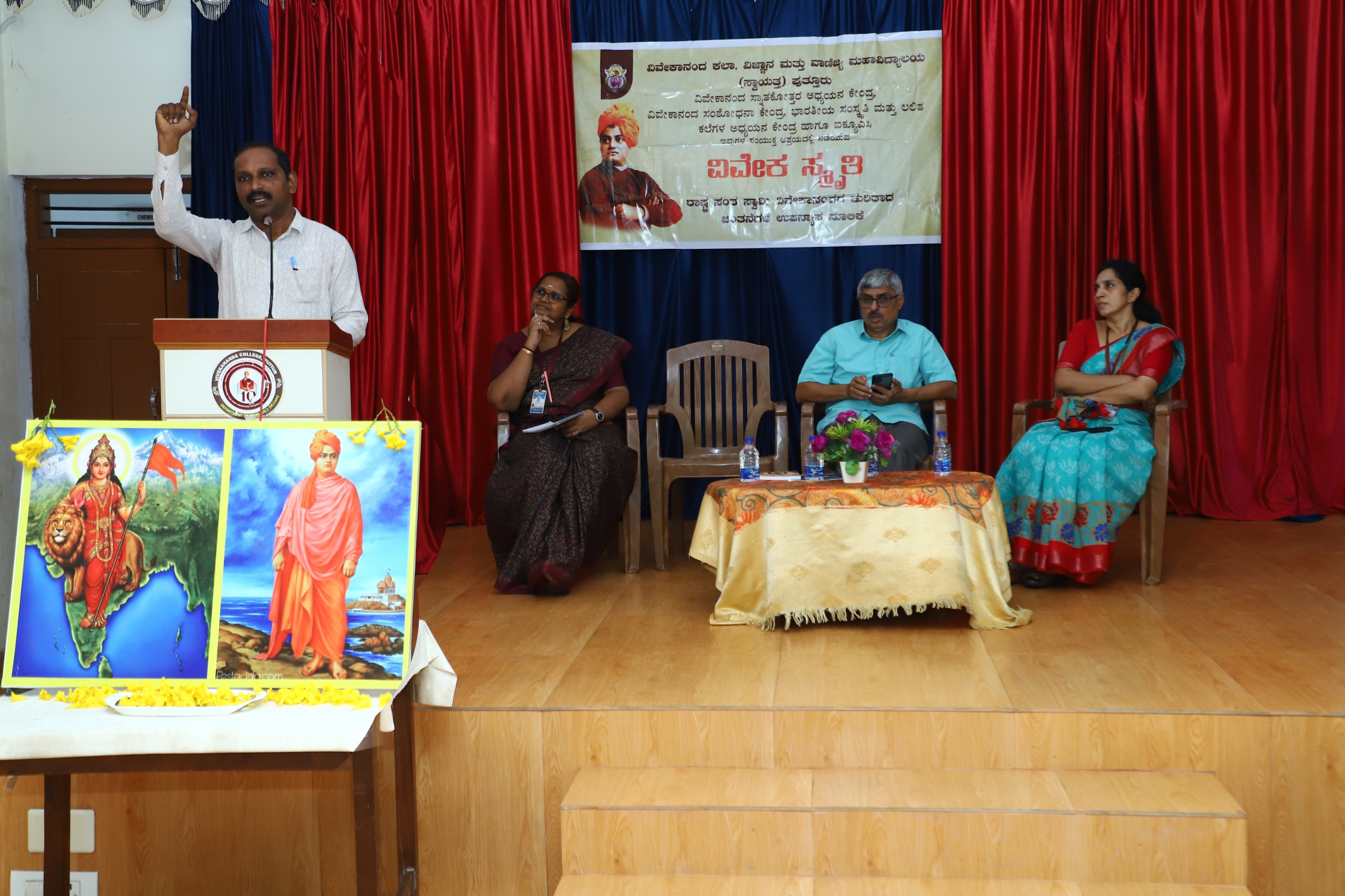 ವಿವೇಕಾನಂದ ಕಲಾ, ವಿಜ್ಞಾನ ಮತ್ತು ವಾಣಿಜ್ಯ (ಸ್ವಾಯತ್ತ) ಮಹಾವಿದ್ಯಾಲಯ, ವಿವೇಕಾನಂದ ಸ್ನಾತಕೋತ್ತರ ಅಧ್ಯಯನ ಕೇಂದ್ರ, ವಿವೇಕಾನಂದ ಸಂಶೋಧನಾ ಕೇಂದ್ರ ಮತ್ತು ಐಕ್ಯೂಎಸಿ ಘಟಕದ ಸಹಯೋಗದಲ್ಲಿ ನಡೆದ ಹದಿನೈದನೇ ಆವೃತ್ತಿಯ ವಿವೇಕಸ್ಮೃತಿ ಉಪನ್ಯಾಸ ಮಾಲಿಕೆಯಲ್ಲಿ ಮಾತನಾಡಿದ ಇವರು ಸಾಧನೆ ಮಾಡಬೇಕೆಂದರೆ ಅಂತರಂಗದಲ್ಲಿರುವ ಜ್ಞಾನವನ್ನು ಹೊರಗೆ ತರಬೇಕಾದರೆ ನಾವು ವಿವೇಕಾನಂದರಂತೆ ಅಧ್ಯಯನಶೀಲರಾಗಬೇಕು. ಜೀವನದ ಅನುಭವ ಪ್ರಾಪ್ತವಾಗಲು ‘ಅಧ್ಯಯನ ಅತ್ಯಗತ್ಯ ಎಂದು ನುಡಿದರು.