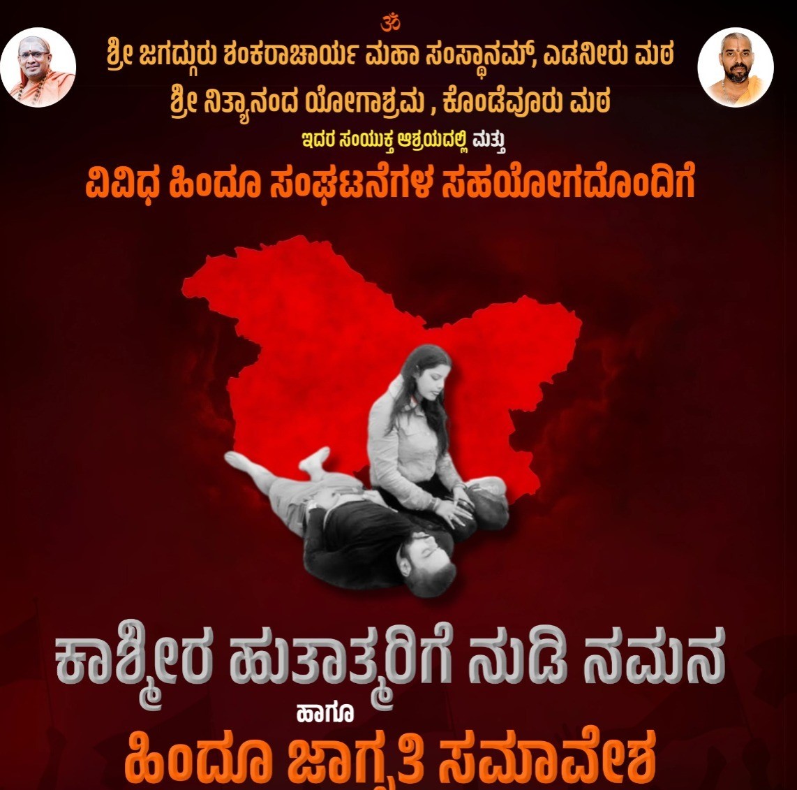 ಭಾರತ ಮುಕುಟಮಣಿ ಕಾಶ್ಮೀರದ ಪಾಹಲ್ಗಮ್ ನಲ್ಲಿ ಎ.22 ರಂದು ನಡೆದ ಪಾಕಿಸ್ಥಾನಿ ಪ್ರೇರಿತ ದುಷ್ಟ ಭಯೋತ್ಪಾದಕರಿಂದ ನಡೆದ ಅಮಾಯಕ ಹಿಂದೂಗಳ ಭೀಕರ ನರಮೇಧವನ್ನು ಖಂಡಿಸಿ ಕಾಸರಗೋಡು ಹಾಗೂ ಮಂಜೇಶ್ವರ ತಾಲೂಕಿನ ಎಲ್ಲಾ ಪಂಚಾಯತ್ಗಳ ಸರ್ವ ದೇಶ ಭಕ್ತ ಹಿಂದೂ ಶಕ್ತಿಗಳ ಒಗ್ಗೂಡುವಿಕೆಯೊಂದಿಗೆ ಪರಮ ಪೂಜ್ಯ ಶ್ರೀಗಳವರ ದಿವ್ಯ ಉಪಸ್ಥಿತಿಯಲ್ಲಿ ವಿರಾಟ್ ಹಿಂದೂ ಸಂಗಮದ ಅಭೂತ ಪೂರ್ವ ಕಾರ್ಯಕ್ರಮ ನಡೆಯಲಿದೆ.