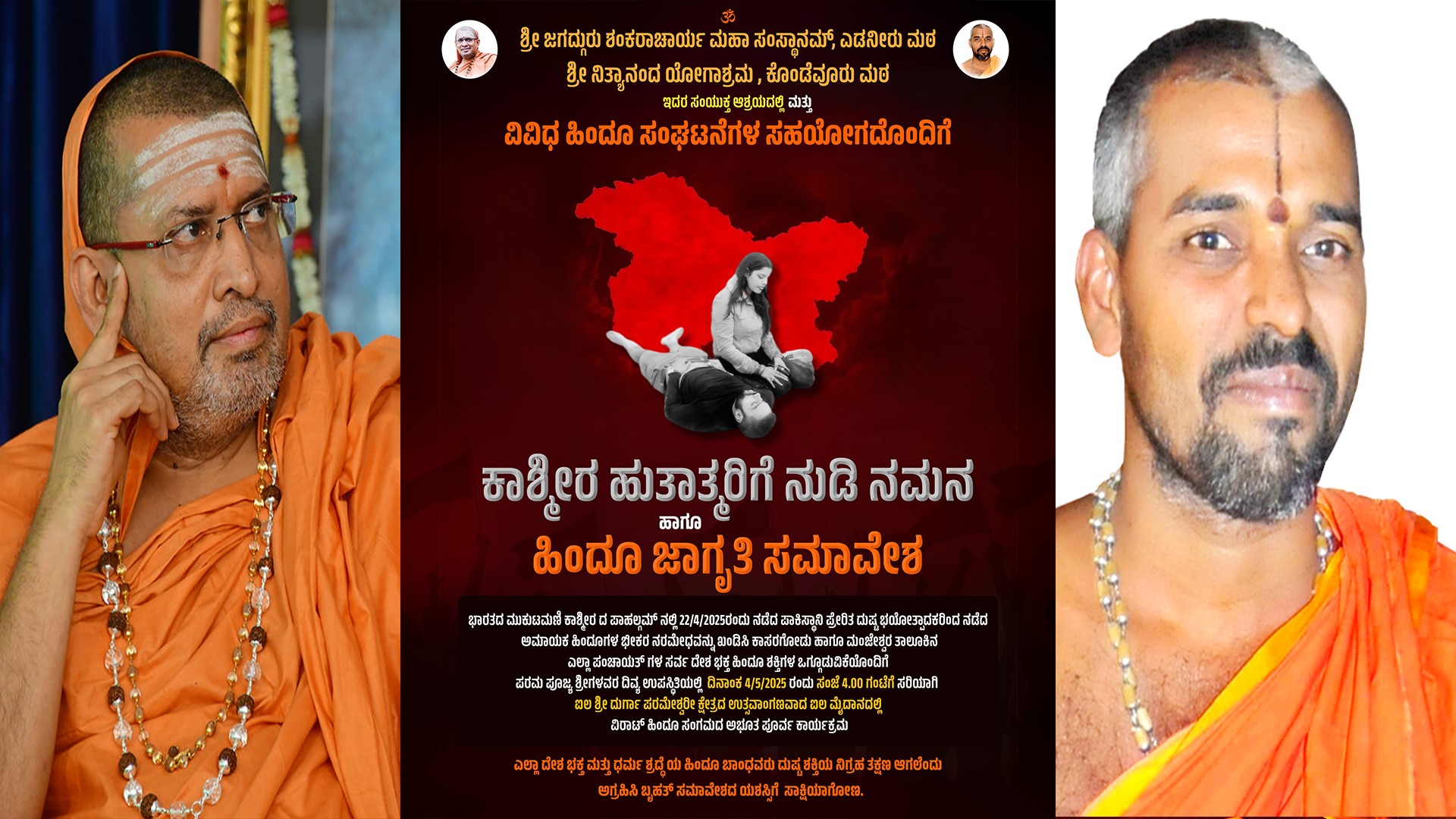 ಭಾರತ ಮುಕುಟಮಣಿ ಕಾಶ್ಮೀರದ ಪಾಹಲ್ಗಮ್ ನಲ್ಲಿ ಎ.22 ರಂದು ನಡೆದ ಪಾಕಿಸ್ಥಾನಿ ಪ್ರೇರಿತ ದುಷ್ಟ ಭಯೋತ್ಪಾದಕರಿಂದ ನಡೆದ ಅಮಾಯಕ ಹಿಂದೂಗಳ ಭೀಕರ ನರಮೇಧವನ್ನು ಖಂಡಿಸಿ ಕಾಸರಗೋಡು ಹಾಗೂ ಮಂಜೇಶ್ವರ ತಾಲೂಕಿನ ಎಲ್ಲಾ ಪಂಚಾಯತ್ಗಳ ಸರ್ವ ದೇಶ ಭಕ್ತ ಹಿಂದೂ ಶಕ್ತಿಗಳ ಒಗ್ಗೂಡುವಿಕೆಯೊಂದಿಗೆ ಪರಮ ಪೂಜ್ಯ ಶ್ರೀಗಳವರ ದಿವ್ಯ ಉಪಸ್ಥಿತಿಯಲ್ಲಿ ವಿರಾಟ್ ಹಿಂದೂ ಸಂಗಮದ ಅಭೂತ ಪೂರ್ವ ಕಾರ್ಯಕ್ರಮ ನಡೆಯಲಿದೆ.