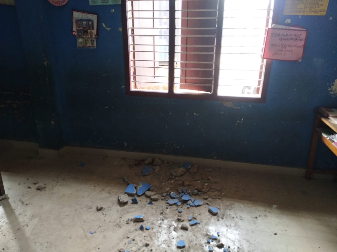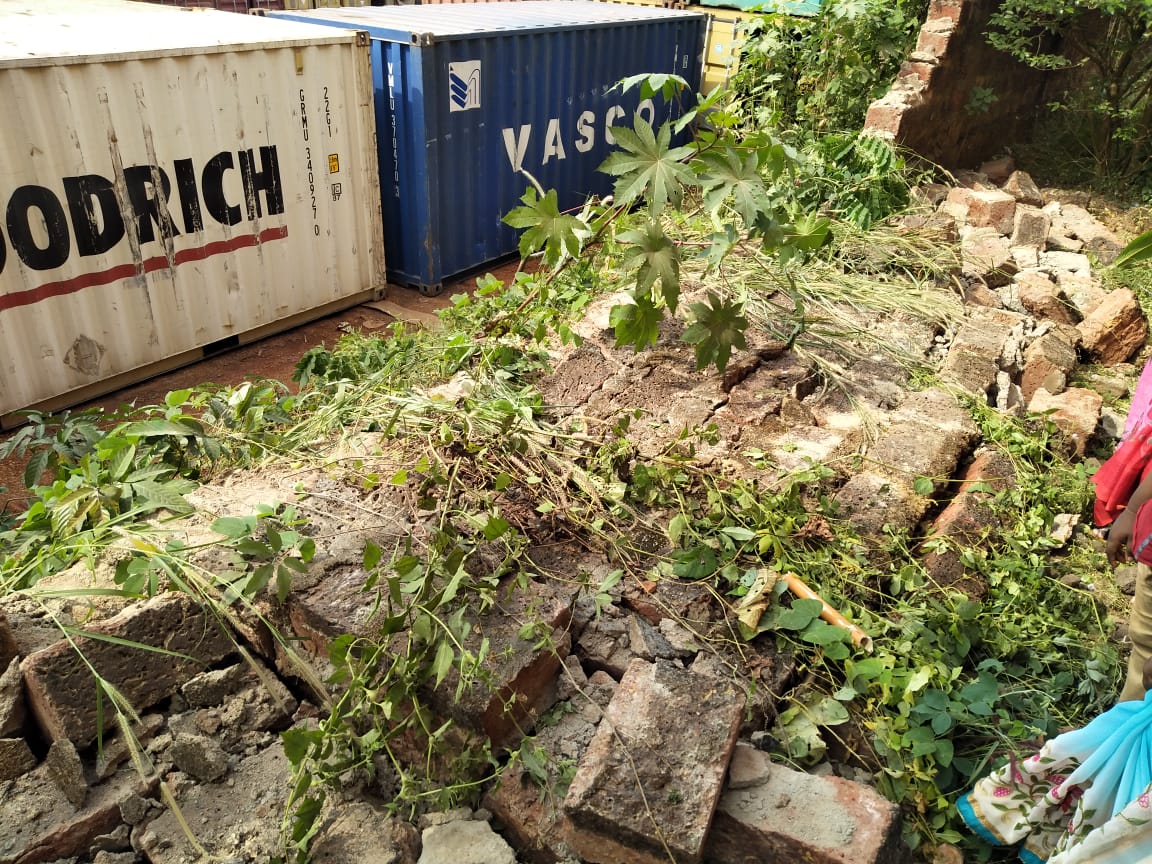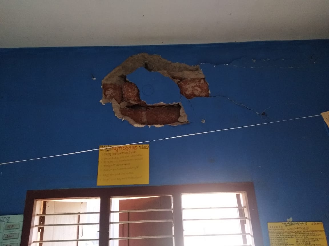 ಸೋಮವಾರ ಬೆಳಿಗ್ಗೆ ಶಾಲೆ ತೆರೆದ ಸಂದರ್ಭದಲ್ಲಿ ಶಾಲೆಯ ಒಂದು ಬದಿಯ ಗೋಡೆಯ ಕಲ್ಲುಗಳು ಕುಸಿದು ಬಿದ್ದಿದ್ದು, ಪರಿಶೀಲಿಸಿದಾಗ ಪಕ್ಕದ ಜಮೀನಿನಲ್ಲಿದ್ದ ಕಂಟೈನರ್ಗಳು ಶಾಲೆಯ ಮೇಲೆಯೇ ಕುಸಿದುಬಿದ್ದಿರುವುದು ಕಂಡು ಬಂದಿದೆ. ಇದರಿಂದ ಶಾಲೆಯ ಪಶ್ಚಿಮ ದಿಕ್ಕಿನ ಗೋಡೆ ತೀವ್ರ ಬಿರುಕು ಬಿಟ್ಟಿದ್ದು, ಗೋಡೆಯ ಕೆಲವು ಕಲ್ಲುಗಳೂ ಉರುಳಿ ಬಿದ್ದಿದೆ. ಅಲ್ಲದೇ ಶಾಲೆಯ ಕಂಪೌಂಡ್ ಸಂಪೂರ್ಣ ಜಖಂಗೊಂಡಿದೆ.