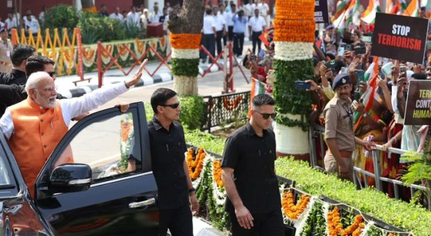 ವಡೋದರ: ಆಪರೇಷನ್ ಸಿಂದೂರ್ ಬಳಿಕ ಪ್ರಧಾನಿ ನರೇಂದ್ರ ಮೋದಿ ಅವರು ಮೊದಲ ಬಾರಿಗೆ ತವರು ರಾಜ್ಯ ಗುಜರಾತ್ ಗೆ ಭೇಟಿ ನೀಡಿದ್ದಾರೆ. ಸೋಮವಾರ (ಮೇ 26) ಅವರು ಎರಡು ದಿನಗಳ ಗುಜರಾತ್ ಪ್ರವಾಸ ಆರಂಭಿಸಿದ್ದು, ವಡೋದರಾದಲ್ಲಿ ಬೆಳಗ್ಗೆ ರೋಡ್ ಶೋ ನಡೆಸಿದ್ದಾರೆ.