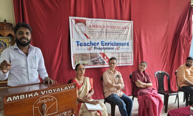 ಪುತ್ತೂರು : ನಗರದ ನಟ್ಟೋಜ ಫೌಂಡೇಶನ್ ಟ್ರಸ್ಟ್ ಮುನ್ನಡೆಸುತ್ತಿರುವ ಬಪ್ಪಳಿಗೆಯಲ್ಲಿನ ಅಂಬಿಕಾ ಸಿ.ಬಿ.ಎಸ್.ಇ. ವಿದ್ಯಾಲಯದಲ್ಲಿ ಶಿಕ್ಷಕರಿಗಾಗಿ ‘ವೇದಗಣಿತ ಮತ್ತು ಹ್ಯಾಂಡ್ ರೈಟಿಂಗ್ ಸ್ಕಿಲ್’ ವಿಷಯದ ಕುರಿತು ಶನಿವಾರ ಒಂದು ದಿನದ ತರಬೇತಿ ಕಾರ್ಯಗಾರ ನಡೆಯಿತು. ನಂಬರ್ ಎಜುಕೇಶನಲ್ ಸೊಲ್ಯೂಷನ್ಸಂಸ್ಥೆಯ ಸ್ಥಾಪಕ ವೇದಗಣಿತದ ಸಂಪನ್ಮೂಲ ವ್ಯಕ್ತಿಗಳಾದ ನವೀನ್ ಇವರು ಗಣಿತದಲ್ಲಿ ಮಕ್ಕಳು ಎದುರಿಸುವ ಸಮಸ್ಯೆಯನ್ನು ಗುರುತಿಸಿ ಕಲಿಕೆಯನ್ನು ಸುಲಭಗೊಳಿಸುವ ಸಲುವಾಗಿ ನಂಬರ್ ಎಜುಕೇಶನಲ್ ಸೊಲ್ಯೂಷನ್ ಸಂಸ್ಥೆಯನ್ನು ಆರಂಭಿಸಲಾಯಿತು ಎಂದರು.