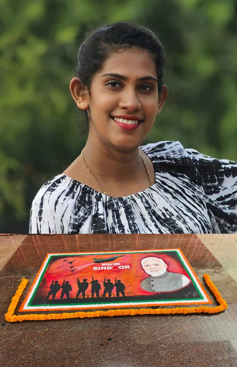 ಬೆಳ್ತಂಗಡಿ : ಲಾಯಿಲ ಸಭಾಭವನದಲ್ಲಿ ನಡೆದ ಬಿಜೆಪಿ ಬೆಳ್ತಂಗಡಿ ಮಂಡಲ ಕಾರ್ಯಕಾರಿಣಿ ಹಾಗೂ ವಿಕಸಿತ ಸಂಕಲ್ಪ ಭಾರತ ಸಂಕಲ್ಪ ಸಭೆಯಲ್ಲಿ ಲಾಯಿಲ ಶ್ರೀಮತಿ ಆಶಾಲತಾ ಪ್ರಶಾಂತ್ ವರ ಕೈ ಚಳಕದಲ್ಲಿ ಮೂಡಿ ಬಂದ ಆಪರೇಷನ್ ಸಿಂಧೂರದ ಅದ್ಭುತ ರಂಗೋಲಿ ಚಿತ್ರ.