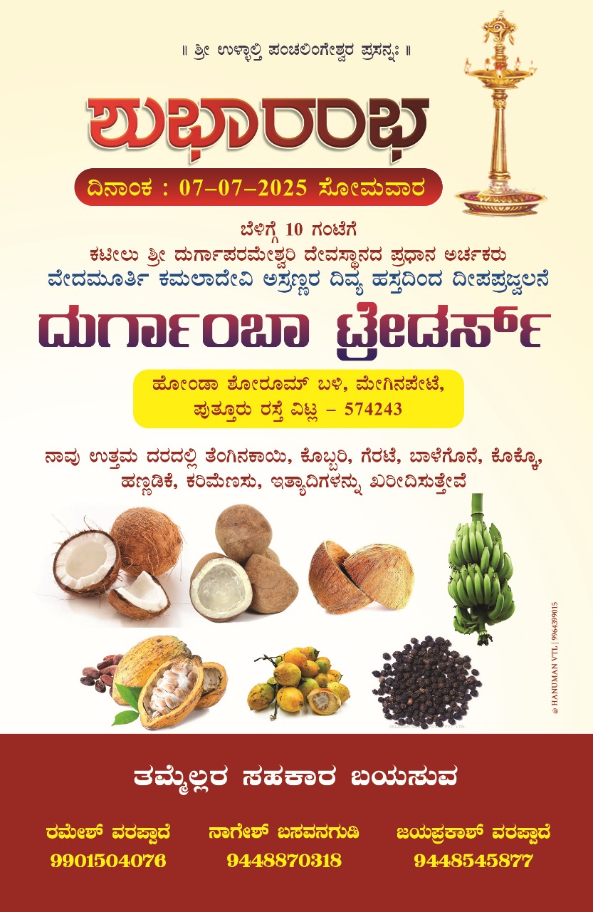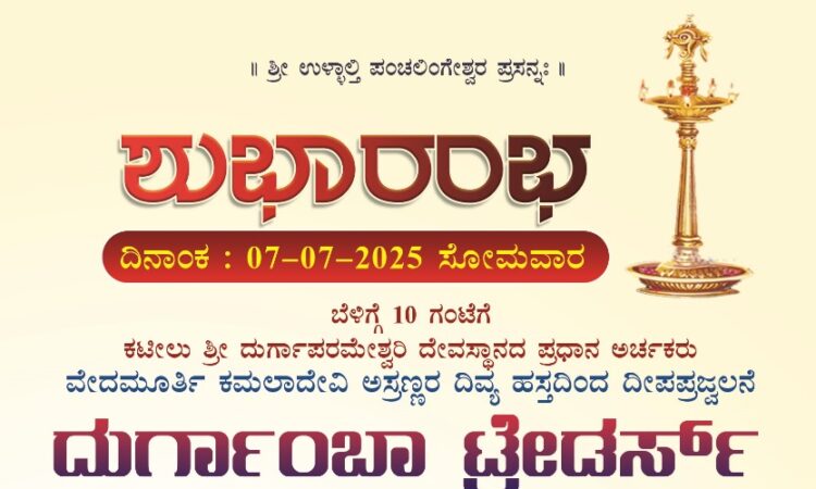 ಜು.7 ರಂದು ವಿಟ್ಲ ಮೇಗಿನಪೇಟೆಯಲ್ಲಿ ದುರ್ಗಾಂಬಾ ಟ್ರೇಡರ್ಸ್ ಶುಭಾರಂಭ – ಕಹಳೆ ನ್ಯೂಸ್