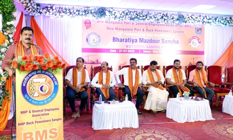 ಮಂಗಳೂರು : ನವ ಮಂಗಳೂರು ಬಂದರು ಸಿಬ್ಬಂದಿ ಮತ್ತು ನಿವೃತ್ತ ಸಿಬ್ಬಂದಿಗಳ ಕಾರ್ಮಿಕ ಸಂಘಟನೆಯಾದ ಭಾರತೀಯ ಮಜ್ದೂರ್ ಸಂಘದ ಕುಟುಂಬ ಸಮ್ಮಿಲನ ಕಾರ್ಯಕ್ರಮ ಆದಿತ್ಯವಾರದಂದು ಪಣಂಬೂರು ಬಿಡಿಸಿ ಸಭಾಂಗಣದಲ್ಲಿ ನಡೆಯಿತು ದೀಪ ಬೆಳಗಿಸಿ ಕಾರ್ಯಕ್ರಮವನ್ನು ಉದ್ಘಾಟಿಸಿದ ವಿಧಾನ ಪರಿಷತ್ ಸದಸ್ಯ ಕಿಶೋರ್ ಕುಮಾರ್ ಬೊಟ್ಯಾಡಿ ಭಾರತೀಯ ಮಜ್ದೂರ್ ಸಂಘ ವಿಶ್ವದ ಅತ್ಯಂತ ಬಲಿಷ್ಠ ಸಂಘಟನೆ ಹಾಗೂ ಕಾರ್ಮಿಕ ವರ್ಗಕ್ಕೆ ಯಾವುದೇ ಫಲಾಪೇಕ್ಷೆ ಇಲ್ಲದೆ ಪ್ರಾಮಾಣಿಕವಾಗಿ ನ್ಯಾಯ ದೊರಕಿಸಿ ಕೊಡುವ ಸಂಘಟನೆಯಾಗಿದೆ ಸಂಘಕ್ಕೆ ಇನ್ನಷ್ಟು ಸದಸ್ಯರನ್ನು ನೋಂದಾಯಿಸಿಕೊಳ್ಳುವ ಜವಾಬ್ದಾರಿ ಸಂಘಟಕರಿಗೆ ಇದೆ ಎಂಬುದಾಗಿ ಹೇಳಿದರು.