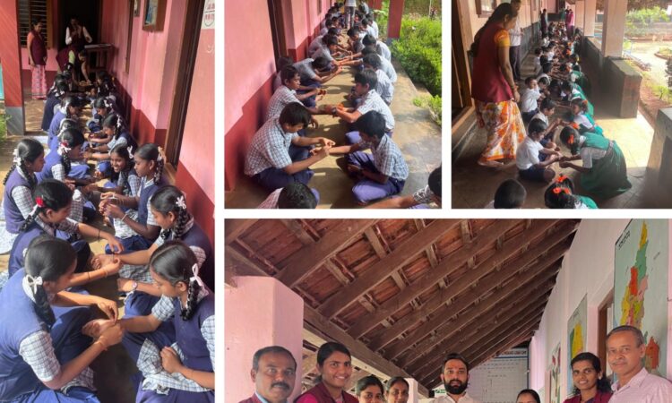ಸಂಸ್ಥೆಯ ಎಲ್ಲಾ ವಿದ್ಯಾರ್ಥಿಗಳಿಗೆ ಆರತಿ ಎತ್ತಿ, ರಾಖಿಯನ್ನು ಕಟ್ಟಿ, ಸಿಹಿ ತಿಂಡಿಯನ್ನು ಹಂಚಿ ರಕ್ಷಾಬಂಧನ ಕಾರ್ಯಕ್ರಮವನ್ನು ಅರ್ಥಪೂರ್ಣವಾಗಿ ಆಚರಿಸಲಾಯಿತು. ಪ್ರೌಢಶಾಲಾ ಮುಖ್ಯ ಶಿಕ್ಷಕಿಯಾದ ಮಾತಾಜಿ ಶ್ರೀಮತಿ ಸುಮನ ಬಿ ಸ್ವಾಗತಿಸಿದರು.