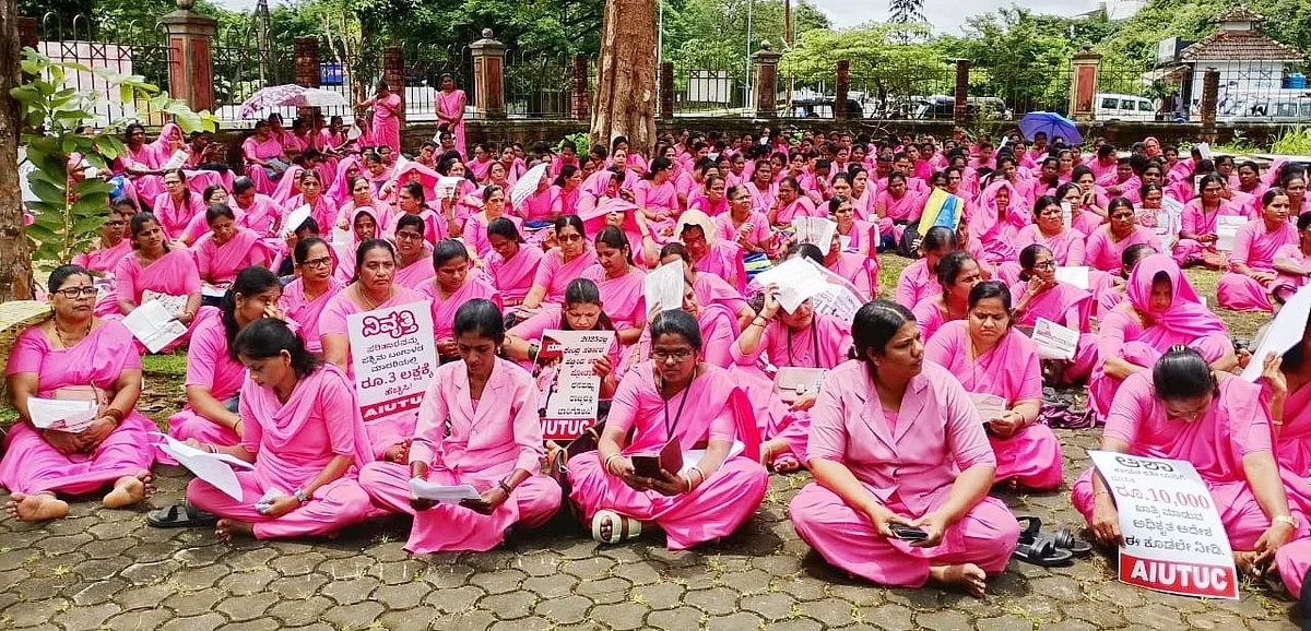 ಎಐಯುಟಿಯುಸಿ ರಾಜ್ಯ ಉಪಾಧ್ಯಕ್ಷ ಕೆ.ವಿ. ಭಟ್ ಮಾತನಾಡಿ, ಮುಖ್ಯಮಂತ್ರಿ ಘೋಷಿಸಿದಂತೆ ಆಶಾ ಕಾರ್ಯಕರ್ತೆಯರಿಗೆ ರಾಜ್ಯದ ಗೌರವಧನ ಮತ್ತು ಕೇಂದ್ರದ ಭಾಗಶಃ ಪ್ರೋತ್ಸಾಹಧನ ಸೇರಿಸಿ ಮಾಸಿಕ ₹10 ಸಾವಿರ ಗೌರವನಿಧಿಯನ್ನು ಏಪ್ರಿಲ್ನಿಂದ ಅನ್ವಯವಾಗುವಂತೆ ನೀಡಬೇಕು ಎಂದು ಆಗ್ರಹಿಸಿದರು.