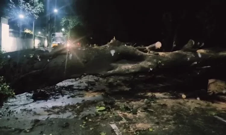 ಬುಧವಾರ ರಾತ್ರಿ ಸುರಿದ ಭಾರೀ ಮಳೆಗೆ ಬುಡ ಸಮೇತ ಮರ ಬಿದ್ದಿದೆ. ಮರ ಬಿದ್ದ ಪರಿಣಾಮ ಪೊಲೀಸ್ ತಿಮ್ಮಯ್ಯ ಸರ್ಕಲ್ ಕಡೆಯಿಂದ ಚಾಲುಕ್ಯ ರಸ್ತೆ ಬಂದ್ ಆಗಿದೆ. ಬಿಬಿಎಂಪಿ ಸಿಬ್ಬಂದಿ ಮರ ತೆರವು ಕಾರ್ಯ ಮಾಡುತ್ತಿದ್ದಾರೆ.