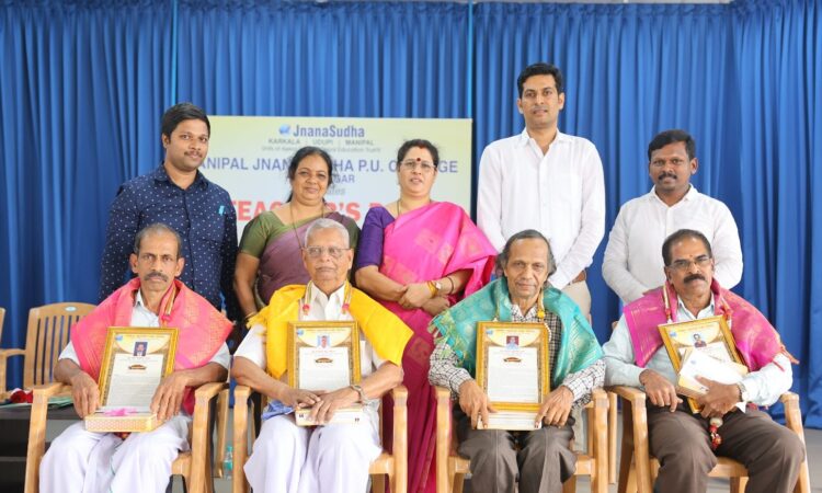 ಬ್ರಹ್ಮಾವರ ಸರಕಾರಿ ಪ್ರೌಢಶಾಲೆಯ ನಿವೃತ್ತ ಮುಖ್ಯ ಶಿಕ್ಷಕರಾದ ಶ್ರೀ ಸಂಜೀವ ಶೆಟ್ಟಿ ಕೊರ್ಗಿ, ಬಿ.ಎಮ್.ಎಮ್. ಪ್ರೌಢಶಾಲೆ ಕೂರಾಡಿಯ ನಿವೃತ್ತ ಮುಖ್ಯ ಶಿಕ್ಷಕರಾದ ಶ್ರೀ ಎಸ್ ಮೂರ್ತಿ ರಾವ್, ಶ್ರೀ ವಿಷ್ಣು ಮೂರ್ತಿ ಪ್ರೌಢಶಾಲೆಯ ನಿವೃತ್ತ ಮುಖ್ಯ ಶಿಕ್ಷಕರಾದ ಶ್ರೀ ಅನಂತ ಪದ್ಮನಾಭ ಭಟ್, ಪಂಚನಬೆಟ್ಟು ವಿದ್ಯಾವರ್ಧಕ ಪ್ರೌಢಶಾಲೆಯ ನಿವೃತ್ತ ಮುಖ್ಯ ಶಿಕ್ಷಕರಾದ ಶ್ರೀ ರಮೇಶ್ ಶೇರ್ವೆಗಾರ್ ಅವರನ್ನು ಗೌರವಿಸಿ ಸನ್ಮಾನಿಸಲಾಯಿತು. ನಿವೃತ್ತ ಮುಖ್ಯ ಶಿಕ್ಷಕರಾದ ಶ್ರೀ ರಮೇಶ್ ಶೇರ್ವೆಗಾರ್ ಮಾತನಾಡಿ ಜ್ಞಾನಸುಧಾ ಶೈಕ್ಞಣಿಕ ಸಾಧನೆಗಳನ್ನು ಶ್ಲಾಘಿಸಿದರು. ನಿವೃತ್ತ ಮುಖ್ಯ ಶಿಕ್ಷಕರಾದ ಶ್ರೀ ಸಂಜೀವ ಶೆಟ್ಟಿ ಕೊರ್ಗಿ ತಮ್ಮ ಶಿಕ್ಷಕ ವೃತ್ತಿಯ ಅನುಭವ ಹಂಚಿಕೊಂಡರು ಮಣಿಪಾಲ ಜ್ಞಾನಸುಧಾ ಪ್ರಾಂಶುಪಾಲರಾದ ಶ್ರೀ ಗಣೇಶ್ ಶೆಟ್ಟಿ ಸ್ವಾಗತಿಸಿದರು.