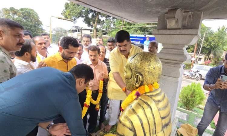 ಮಂಗಳೂರು : ಬಿಜೆಪಿ ಮಂಗಳೂರು ನಗರ ದಕ್ಷಿಣ ಮಂಡಲದ ಹಿಂದುಳಿದ ವರ್ಗಗಳ ಮೋರ್ಚಾ ವತಿಯಿಂದ ಬ್ರಹ್ಮಶ್ರೀ ನಾರಾಯಣ ಗುರುಗಳ 171 ನೇ ಜಯಂತಿ ಆಚರಣೆ ಅಂಗವಾಗಿ ನಗರದ ನಾರಾಯಣಗುರು ವೃತ್ತದಲ್ಲಿರುವ ಪೂಜ್ಯರ ಪ್ರತಿಮೆಗೆ ಶಾಸಕ ವೇದವ್ಯಾಸ ಕಾಮತ್ ರವರು ಪುಷ್ಪ ನಮನಗಳನ್ನು ಸಲ್ಲಿಸಿದರು.