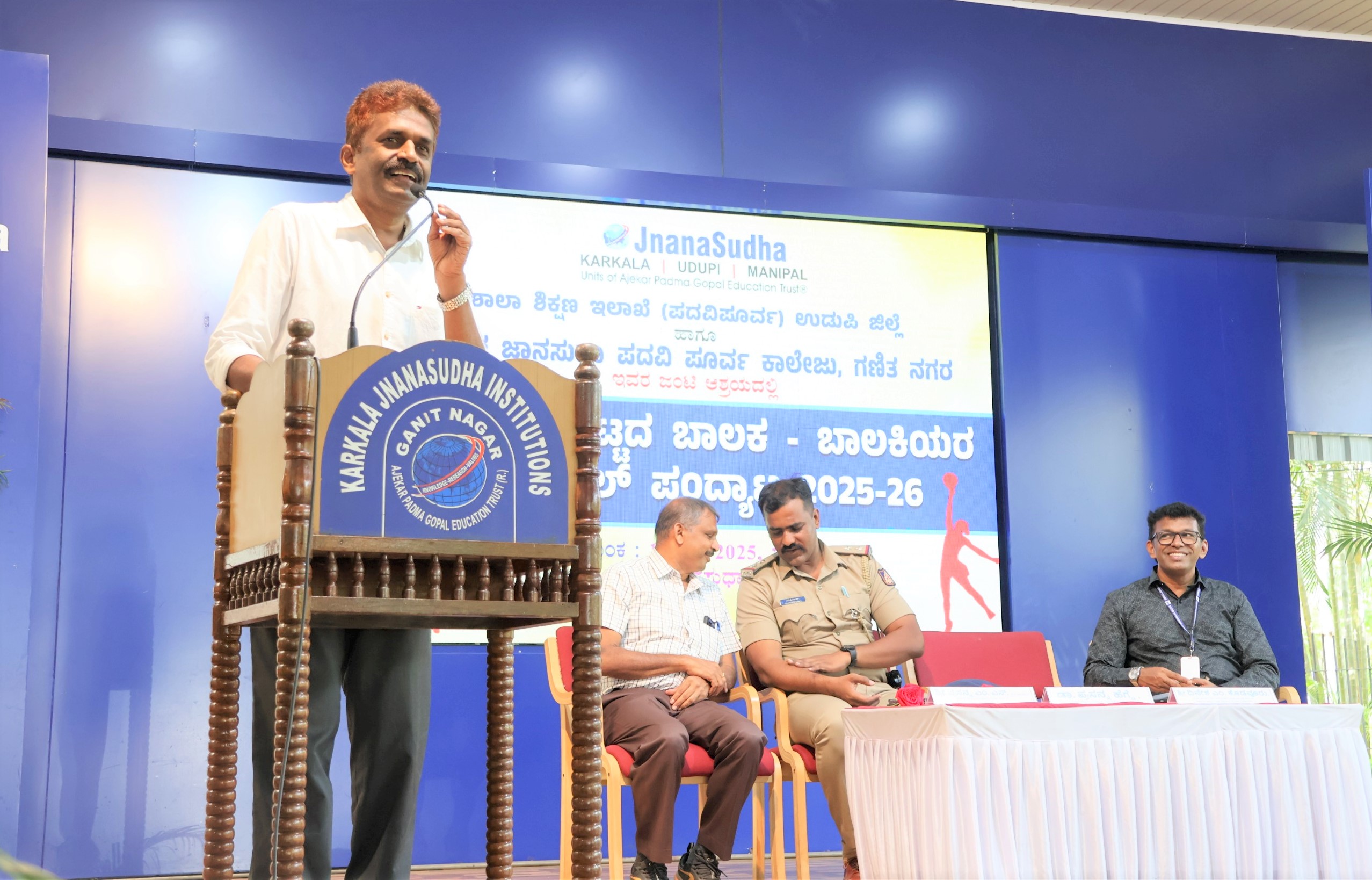 ಶಾಲಾ ಶಿಕ್ಷಣ ಇಲಾಖೆ (ಪದವಿ ಪೂರ್ವ) ಉಡುಪಿ ಹಾಗೂ ಕಾರ್ಕಳ ಜ್ಞಾನಸುಧಾ ಪದವಿ ಪೂರ್ವ ಕಾಲೇಜು ಗಣಿತನಗರದಲ್ಲಿ ಜಂಟಿಯಾಗಿ ಆಯೋಜಿಸಿದ ತಾಲೂಕು ಮಟ್ಟದ ಥ್ರೋಬಾಲ್ ಪಂದ್ಯಾಟದ ಉದ್ಘಾಟನಾ ಸಮಾರಂಭದಲ್ಲಿ ಮುಖ್ಯ ಅತಿಥಿಯಾಗಿ ಮಾತನಾಡಿದರು.