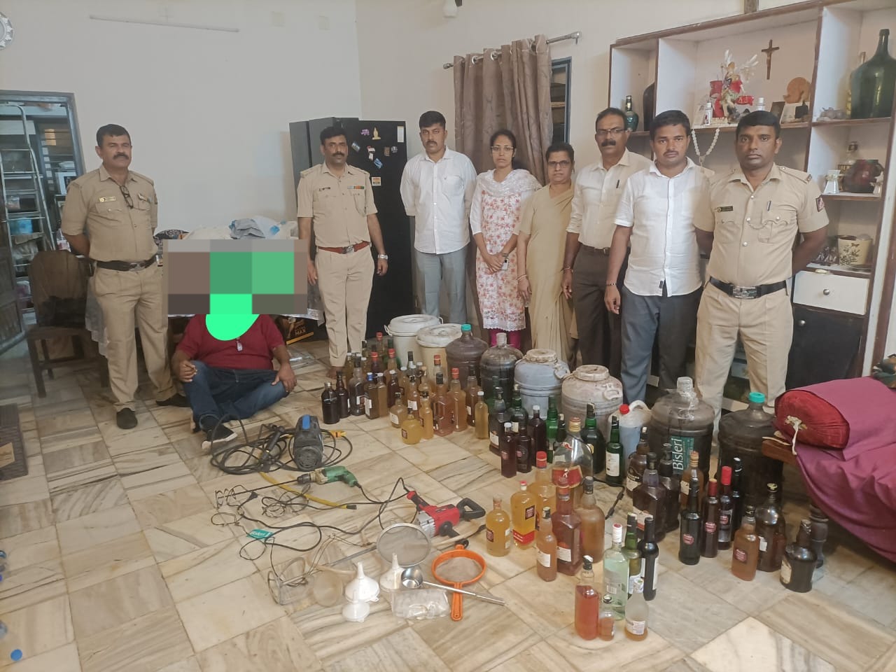 ಮೈಕಲ್ ಬೈಸ್ ಮಿನೇಜಸ್ನ ಮನೆಯಲ್ಲಿ ತಯಾರಿಸಿಟ್ಟಿದ್ದ ನಕಲಿ ವೈನ್ – 238.500 ಲೀಟರ್, ವೈನ್ ತಯಾರಿಸುವ ಕೊಳೆ -1,500 ಲೀಟರ್, ಮದ್ಯ – 3.180 ಲೀಟರ್, ನಕಲಿ ವೈನ್ ತಯಾರಿಸುವ ಸಲಕರಣೆಗಳನ್ನು ವಶಪಡಿಸಿಕೊಂಡಿದ್ದಾರೆ.