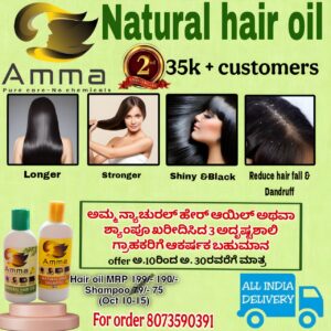ಅಮ್ಮ ನ್ಯಾಚುರಲ್ ಹೇರ್ ಆಯಿಲ್ ಗೆ 2ನೇ ವರ್ಷದ ಸಂಭ್ರಮ; ಹೊಸ ಲೋಗೋ ಬಿಡುಗಡೆ: ವಿಶೇಷ ಆಫರ್ಸ್..! – ಕಹಳೆ ನ್ಯೂಸ್