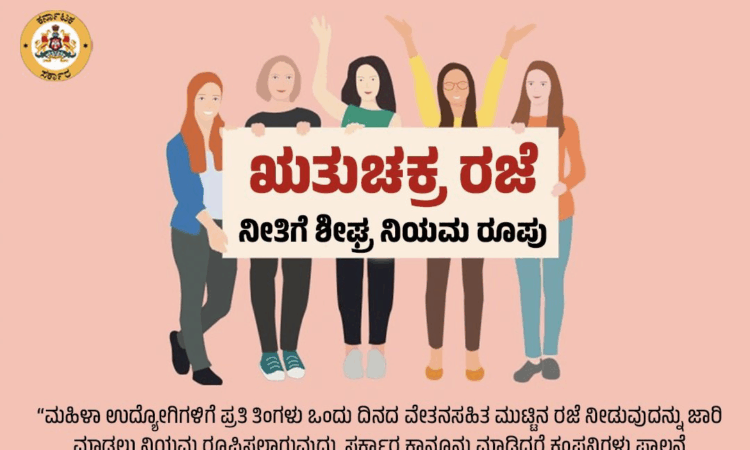 ಮಹಿಳೆಯರ ಆರೋಗ್ಯದ ದೃಷ್ಟಿಯಿಂದ ರಾಜ್ಯಾದ್ಯಂತ ಸರ್ಕಾರಿ ಕಚೇರಿ, ಖಾಸಗಿ ಕಂಪನಿ, ಕೈಗಾರಿಕಾ ವಲಯದಲ್ಲಿ ಕಾರ್ಯನಿರ್ವಹಿಸುವ ಮಹಿಳೆಯರಿಗೆ ಪ್ರತಿ ತಿಂಗಳು ಒಂದು ದಿನ ವೇತನ ಸಹಿತ ಋತು ಚಕ್ರ ರಜೆ ನೀತಿ 2025 ಜಾರಿಗೆ ಸರ್ಕಾರ ನಿರ್ಧರಿಸಿದೆ.