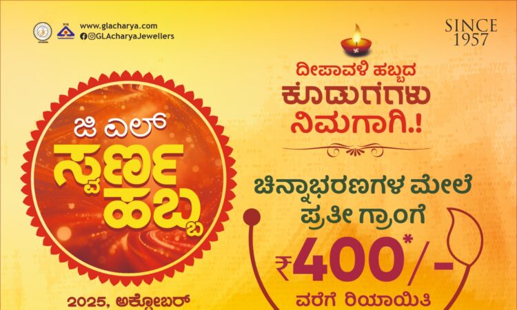 ಜಿ.ಎಲ್. ಆಚಾರ್ಯ ಜ್ಯುವೆಲ್ಲಸರ್ನಲ್ಲಿ ದೀಪಾವಳಿ ಹಬ್ಬದ ಪ್ರಯುಕ್ತ ಜಿ.ಎಲ್. ಸ್ವರ್ಣ ಹಬ್ಬ ಚಿನ್ನಾಭರಣಗಳ ಖರೀದಿಗೆ ಆಕರ್ಷಕ ಕೊಡುಗೆ- ಕಹಳೆನ್ಯೂಸ್